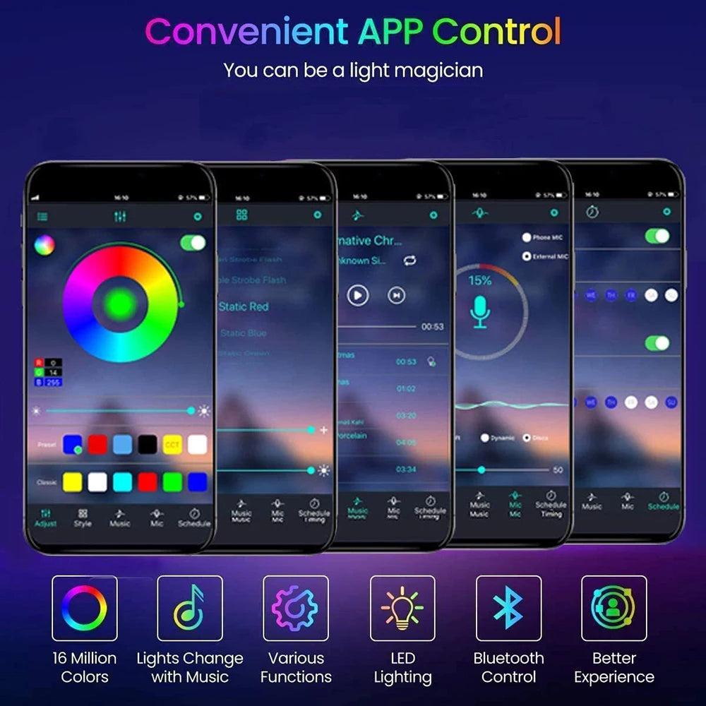 • Bluetooth Control :Equipped with Bluetooth control, this LED strip light allows you to adjust the intensity and color temperature with ease, offering a personalized lighting experience.