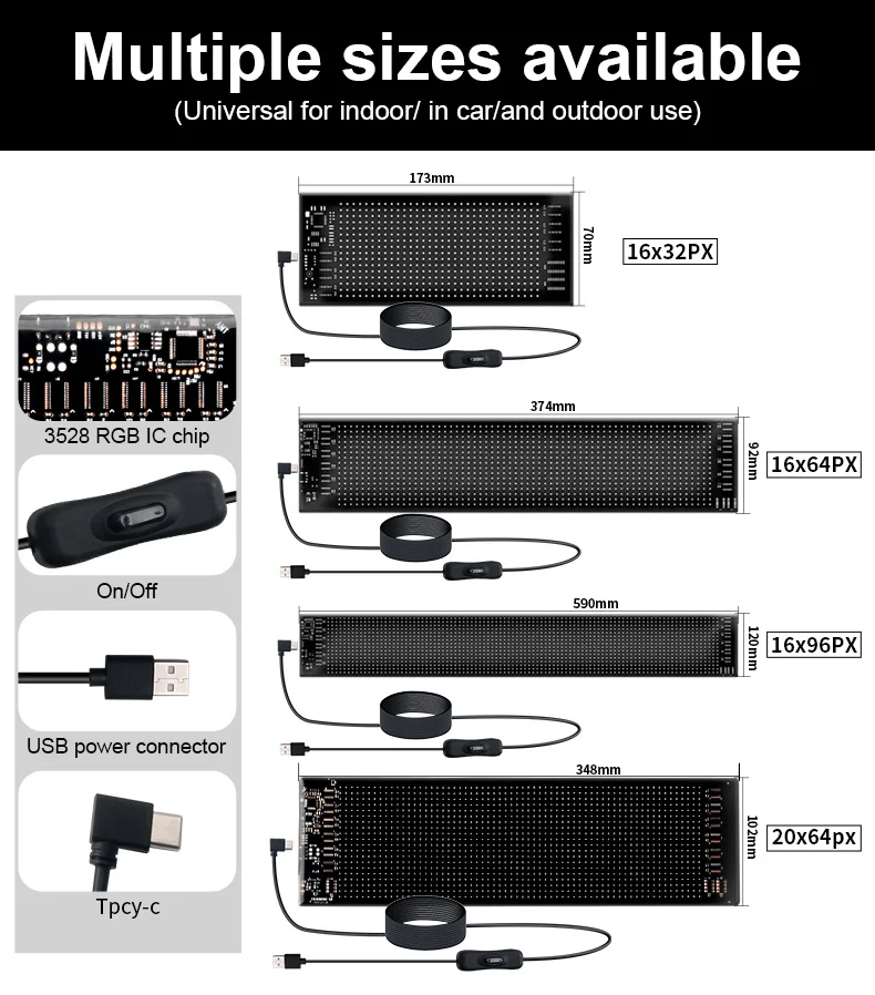 【Flexible Circuit Board USB Plug Design】The LED matrix is thin and light, and can be bent and folded at will, the usb plug design is more portable and has a wider range of applications, 3m tape is also included in the product, which can be attached to the wall or other objects as you like.