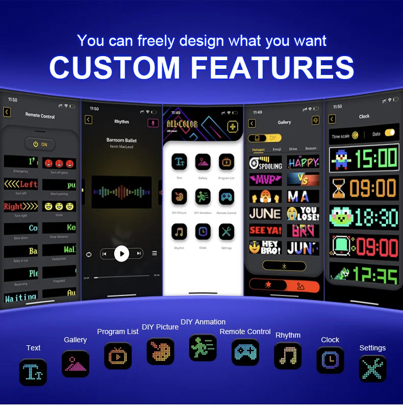 【Smart APP Control】Connect the LED matrix through the APP, you can DIY design text, patterns, animations according to your own needs and scenes, and you can also adjust the brightness and speed to perfectly meet your needs.
