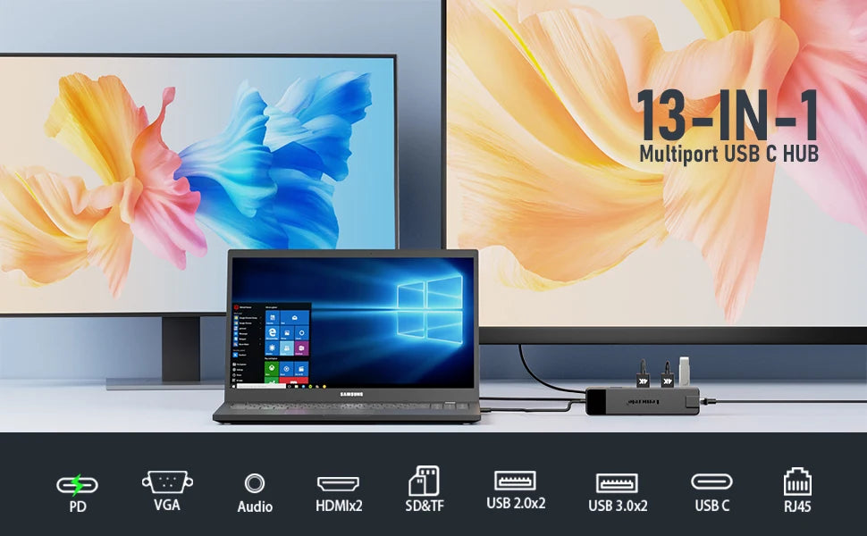 Lemorele 4K USB Hub USB C to Dual HDMI VGA Gigabit Docking Station USB 3.0 VGA Adapter SD Card Readers for Windows MacBook Air