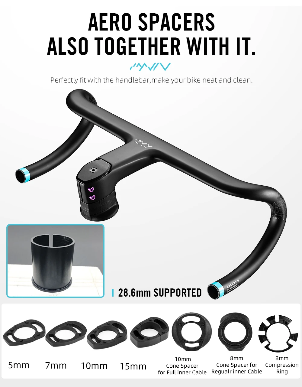 LEXON Full Carbon Road Integrated Handlebar Ultralight Road Bike Handlebar T1000 Racing Bent Bar, Bicycle Accessories 28.6mm