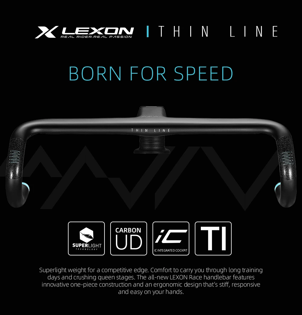 LEXON THIN LINE Full Carbon Road Handlebar 28.6mm Ultralight Road Bike Handlebar T1000 Racing Bent Bar Bicycle Accessories