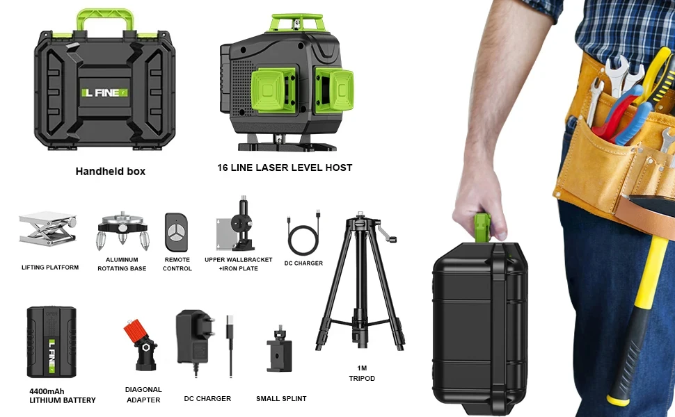 Lfine 4D 16 Lines 360°Self-leveling Laser Levels with Tripod and Suitcase Horizontal And Vertical Professional Laser Level Tool