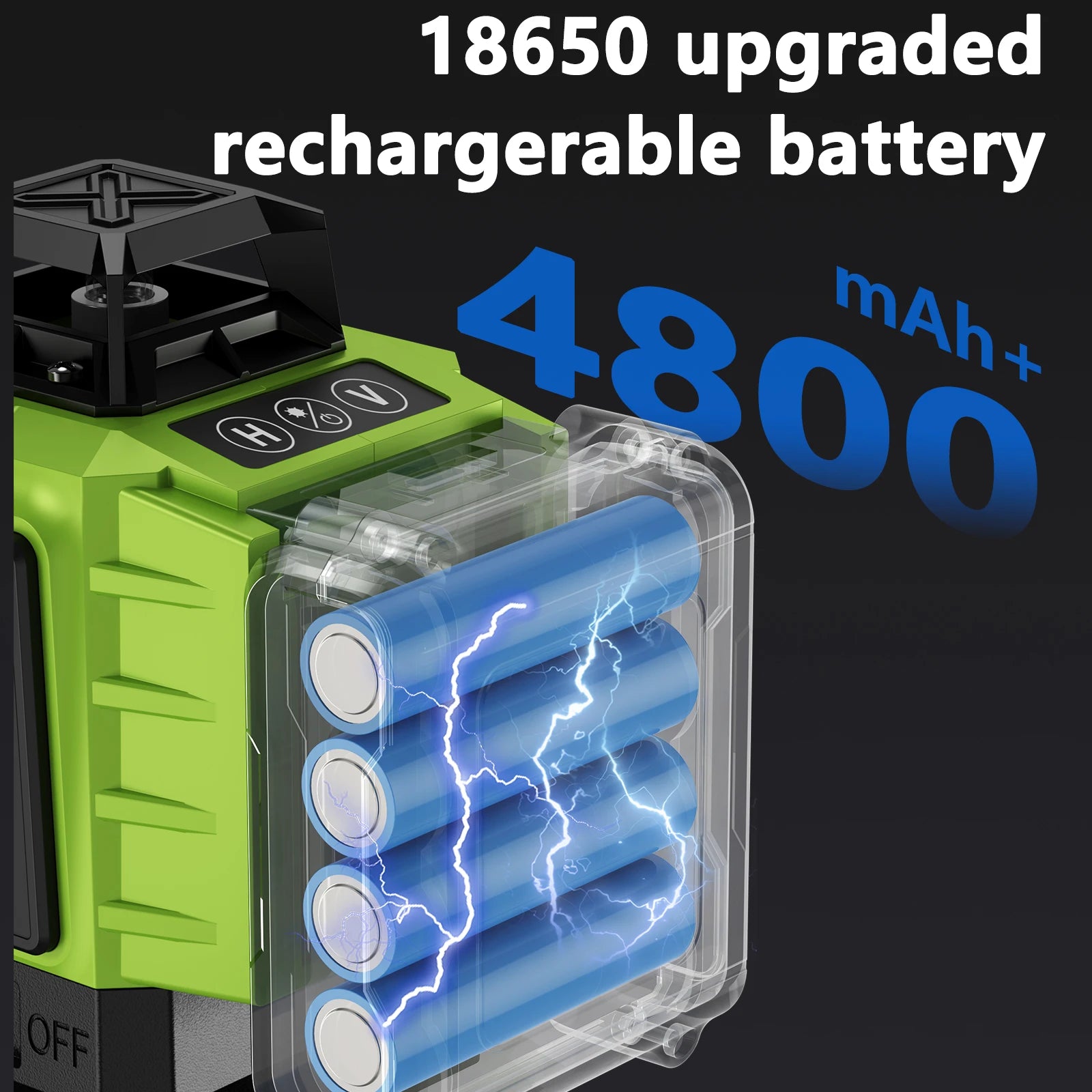 A large capacity 4800mAh battery, type C interface, body battery level display, this laser level can maintain over 6 hours of continuous working with all 16 lines fully opened.Easy to carry.
