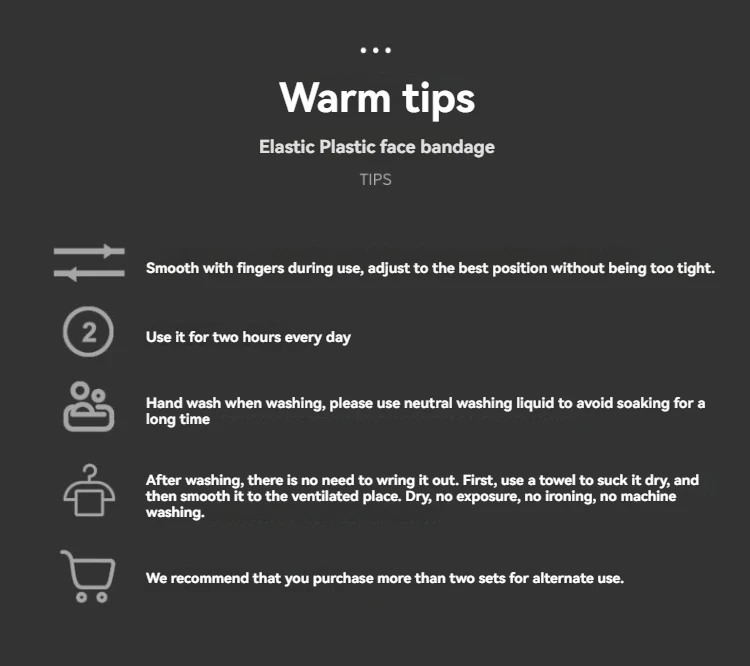 • Facial Sculpting :This product is a facial sculpting bandage, designed to tighten double chin and enhance facial elasticity, providing a youthful and beautiful appearance.