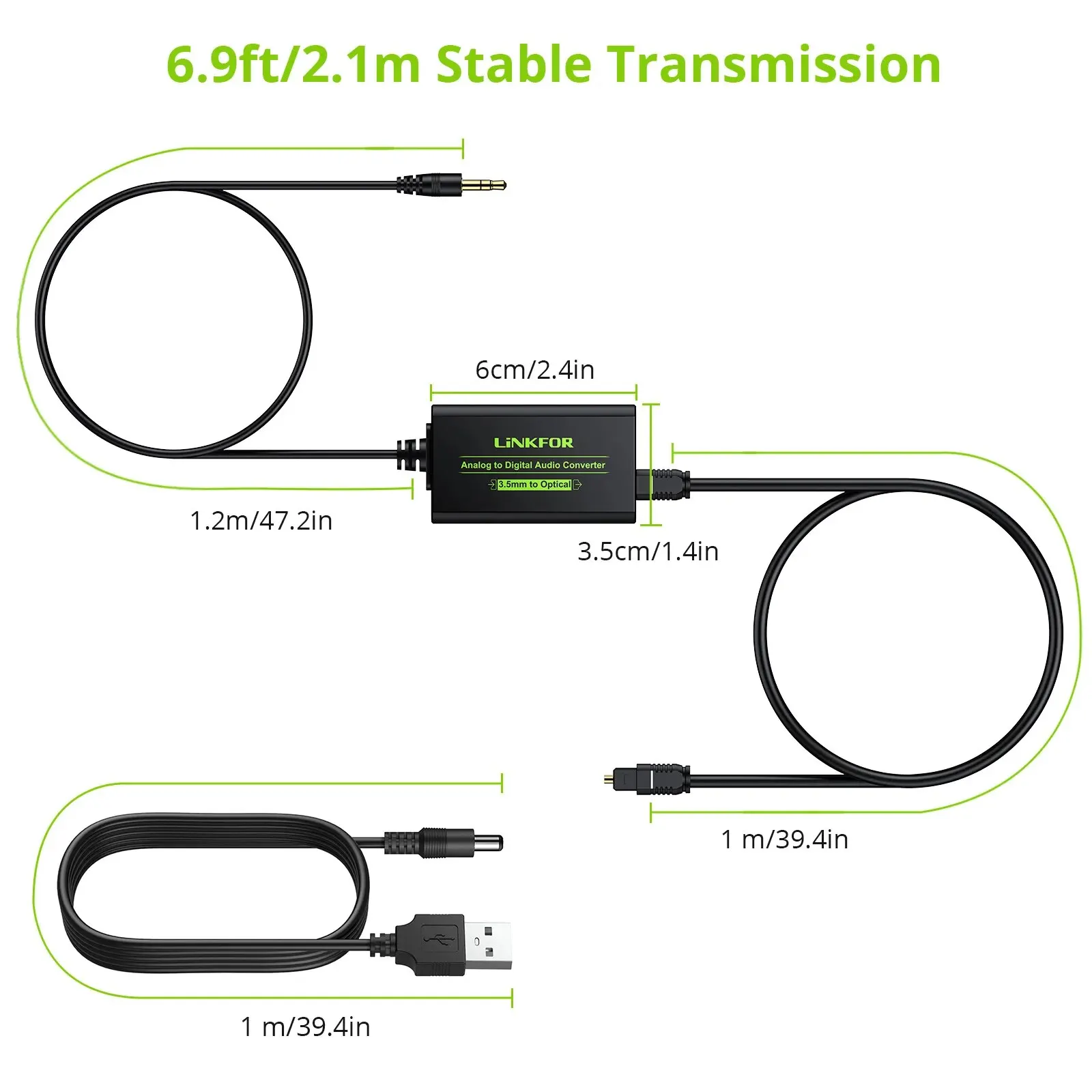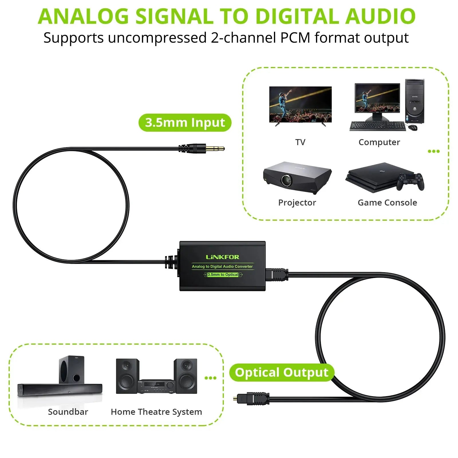 LiNKFOR 3.5mm to SPDIF Converter AUX to Digital Coaxial Toslink Optical Audio Adapter with Optical Cable for PS3 Blu-ray Player