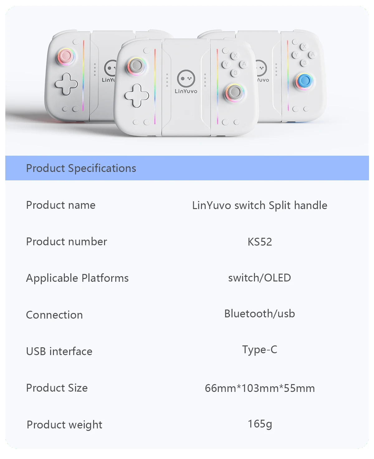 LinYuvo Wireless Switch Controller KS52 for Nintendo NS/OLED,Wireless Joypad Controller with Adjustable Vibration&Large Battery