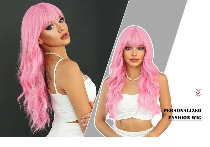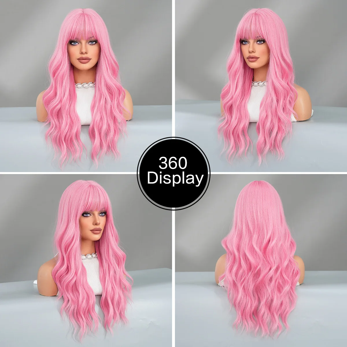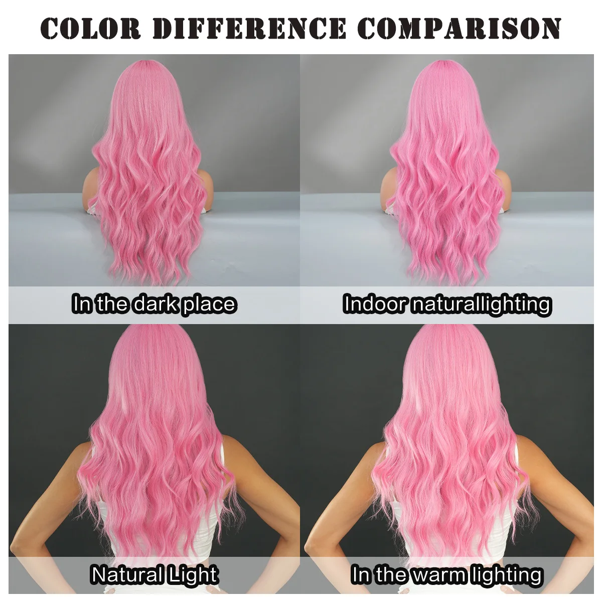 Long Curly Pink Red Synthetic Wig Middle Part Of The Natural Lolita Wig For Women's Daily Cosplay Heat Resistant Big Wave Wig