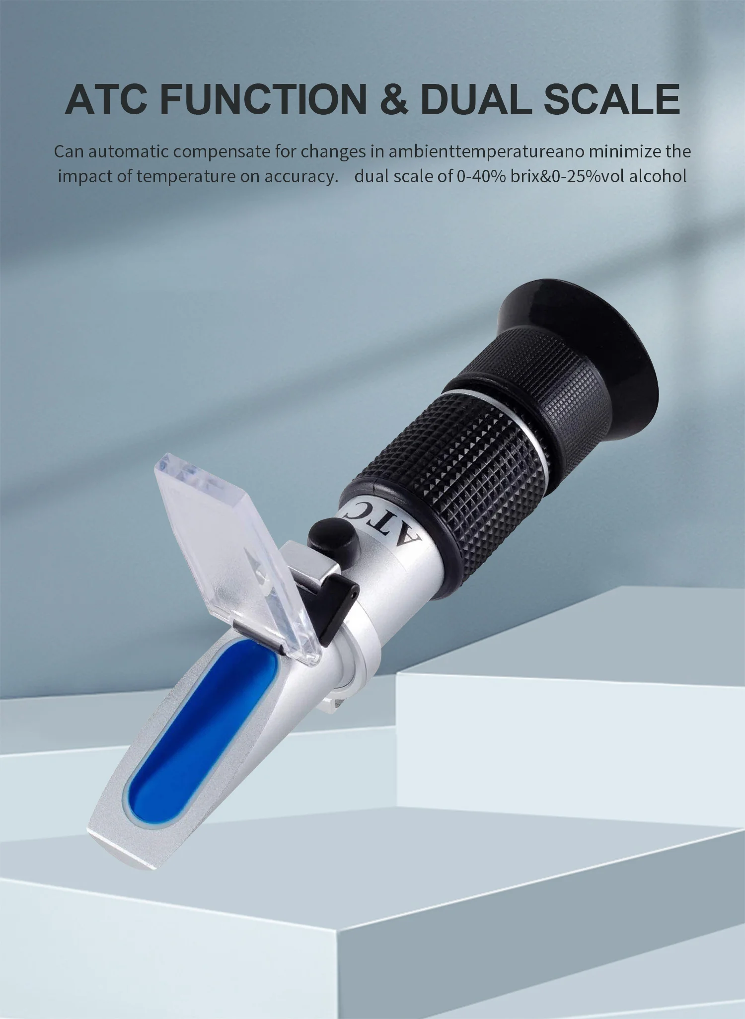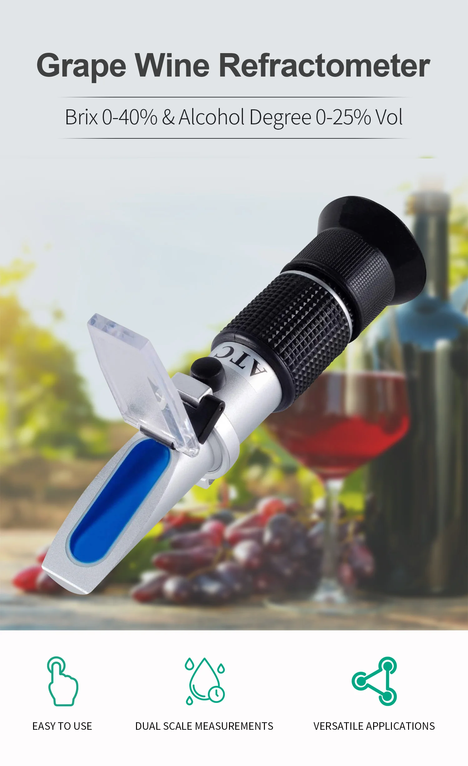 Handheld Wine Alcohol Refractometer with ATC Dual Scale Brix 0-40% 0-25% VOL Optical Tester for Grape Wine Making Winemakers Homebrew Tool