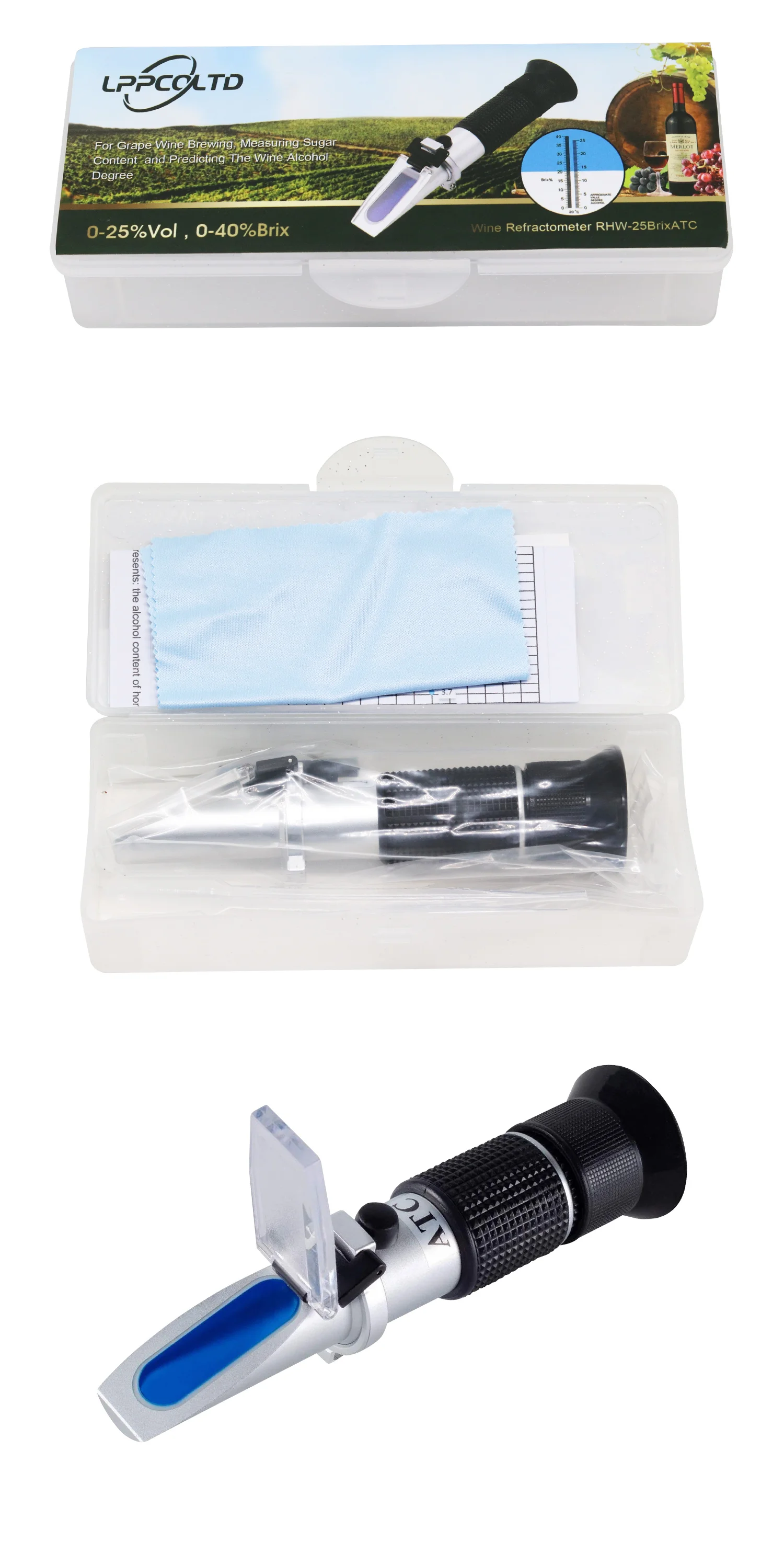 LPPCOLTD Handheld Alcohol Sugar Refractometer Tester Wine Concentration Meter Densitometer 0-25% Alcohol Beer 0-40% Brix Grapes