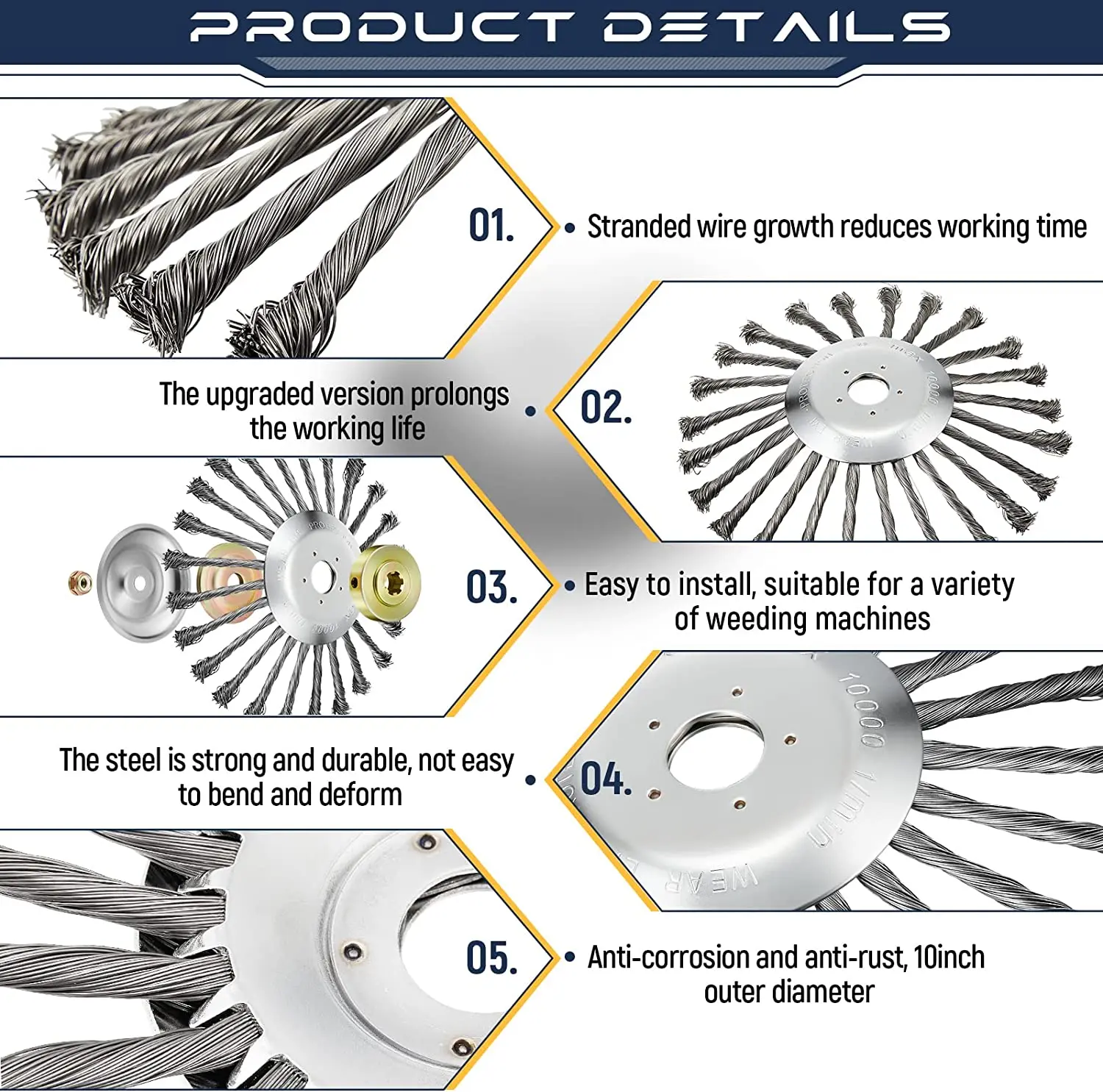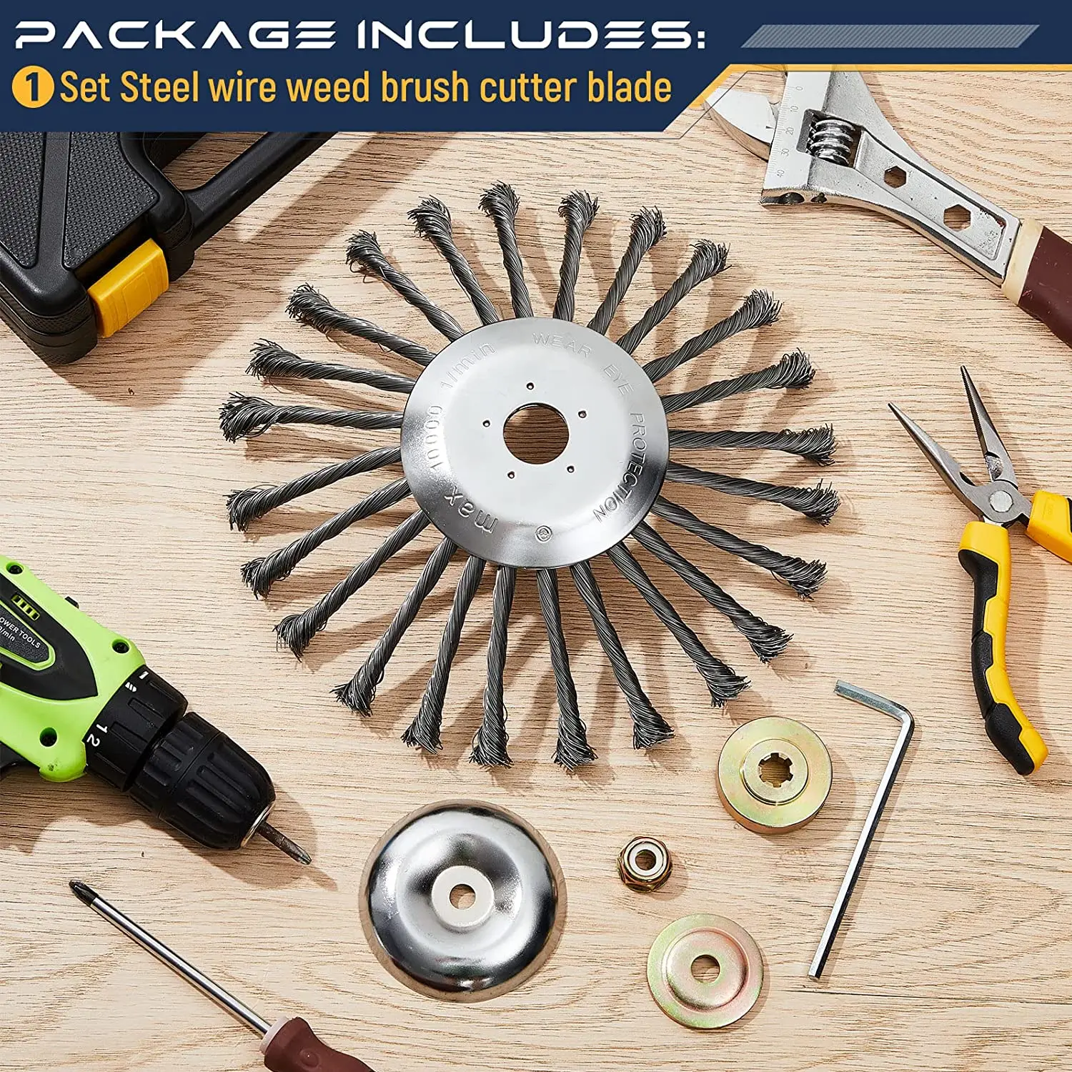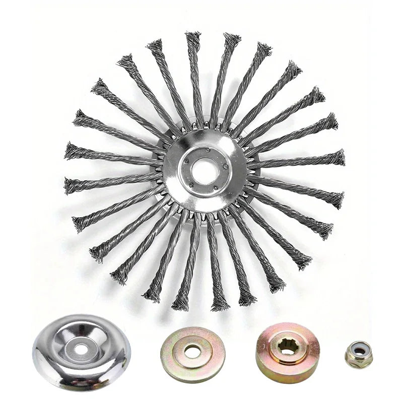 LUSQI 10'' Steel Wire Wheel Grass Trimmer Head Garden Weeding Brush Replacement For Home Gas-Power Brushcutter Removal Rust&Moss