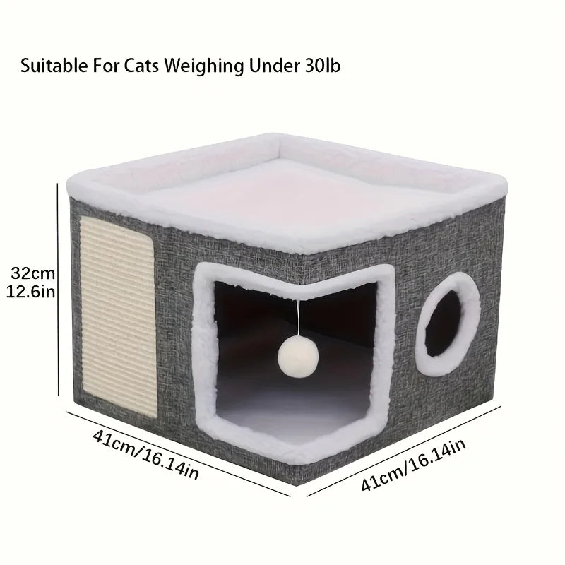 Luxury Cat Tree Bed with Scratching Post - Dual-Level 4-Season Pet Furniture, Organic Bamboo Base & Orthopedic Cushion