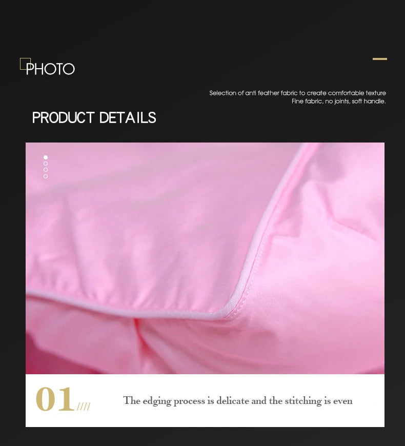 ●The duvet adopts a three-dimensional separation process, which effectively fixes the filling, does not run down, has exquisite quilting, delicate stitches, is breathable and warm, and is not easy to shrink, providing every sleeper with the most comfortable warmth and perfect sleep in the cold winter.