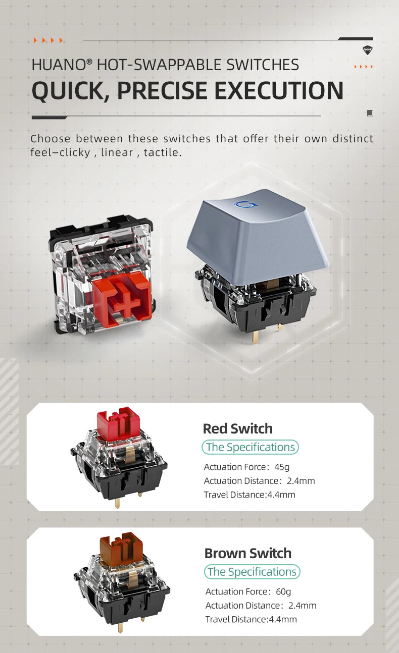 • Hot-Swappable Switches :Easily swap out switches without soldering, allowing for customization and easy maintenance.