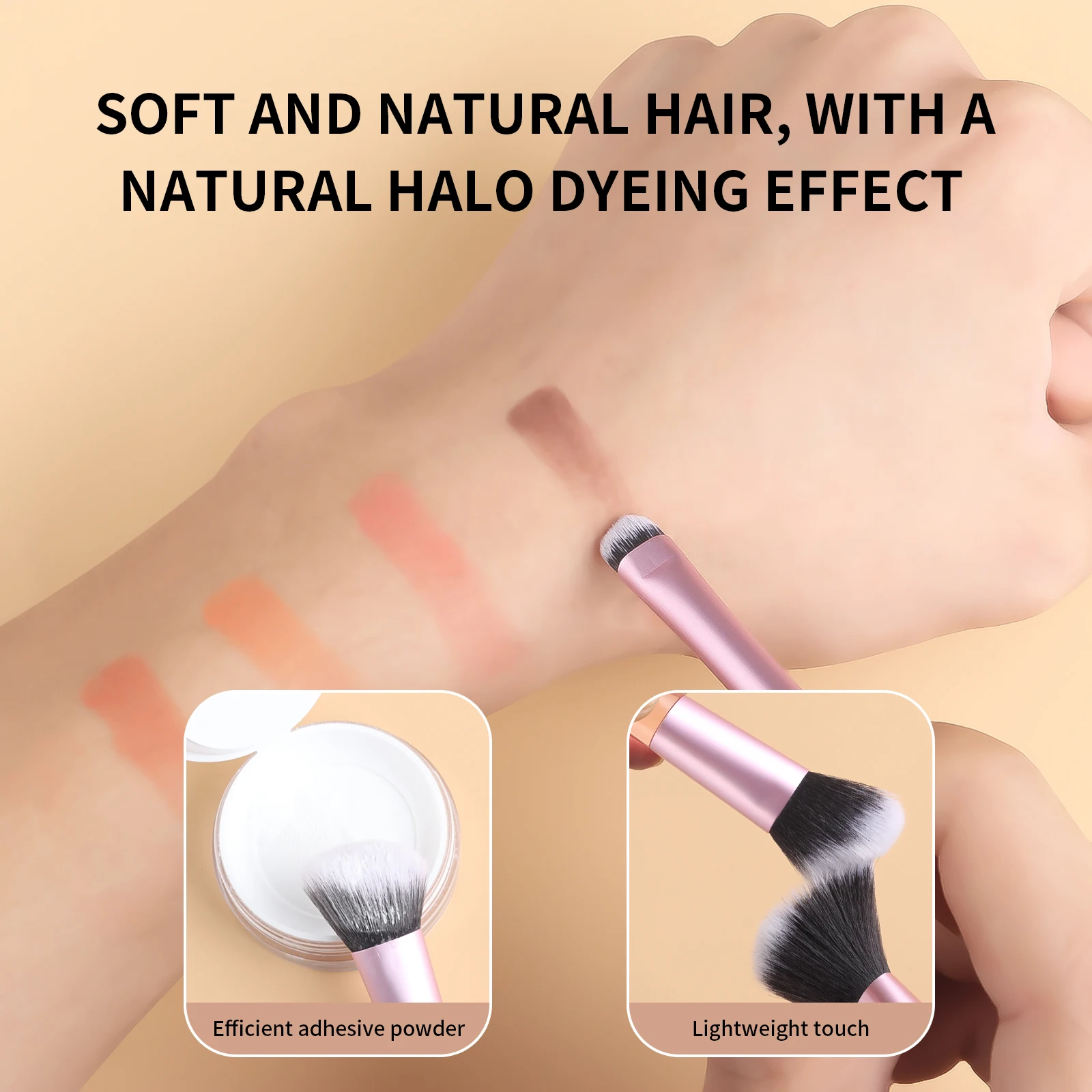''From foundation to eyeshadow, our makeup brushes are designed to provide a smooth and seamless application, giving you a flawless look. The size of the mini makes the brush ideal for carrying in a makeup bag, which is very convenient for both travel and daily use. Our makeup brushes are made of soft synthetic hair, perfect for blending and smudging, so you can have a professional level of makeup anytime, anywhere. Whether you're new to makeup or a seasoned expert, our makeup brushes are so convenient and easy to use that they're a must-have for any beauty routine. Enhance your makeup skills with our makeup brushes and achieve the stunning results you deserve. "