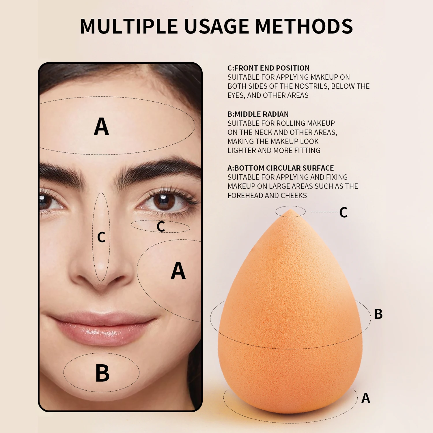 The handle has a fine texture and a natural curvature. Two drop-shaped beauty eggs and makeup puff to meet your makeup needs.