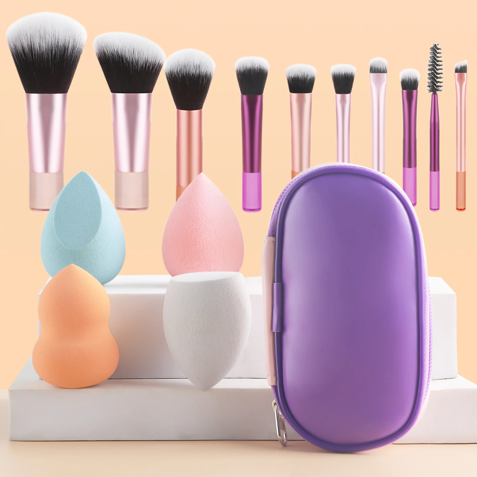 Makeup Brush Sets, 15pcs Plastic Multiple shapes Beauty Egg&Storage bag Multifunctional Cosmetic Brush For Making Up Supply