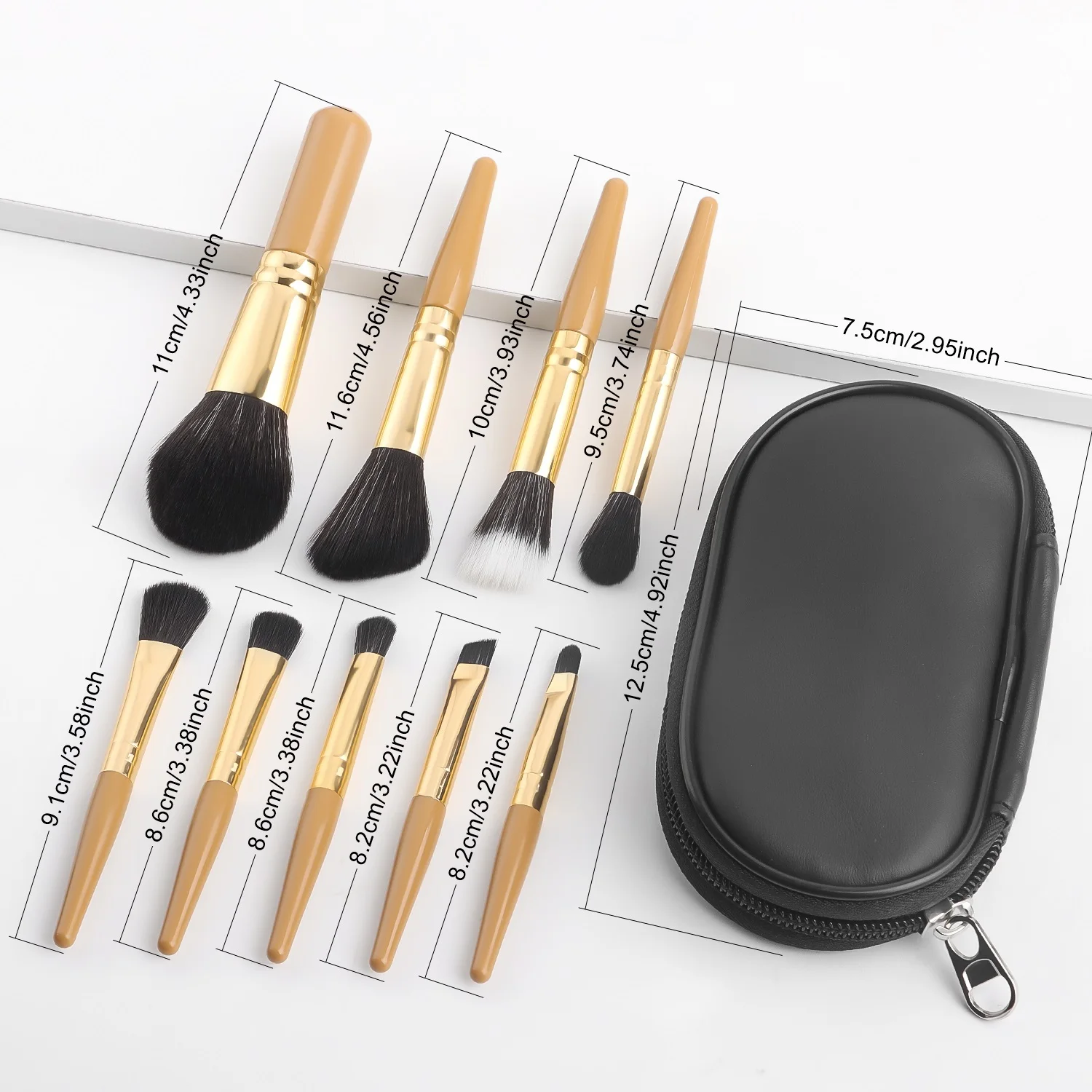 Makeup Brush Sets , 9pcs Minimalist Portable With Storage Bag Portable Cosmetic Brushes For Making Up Supply