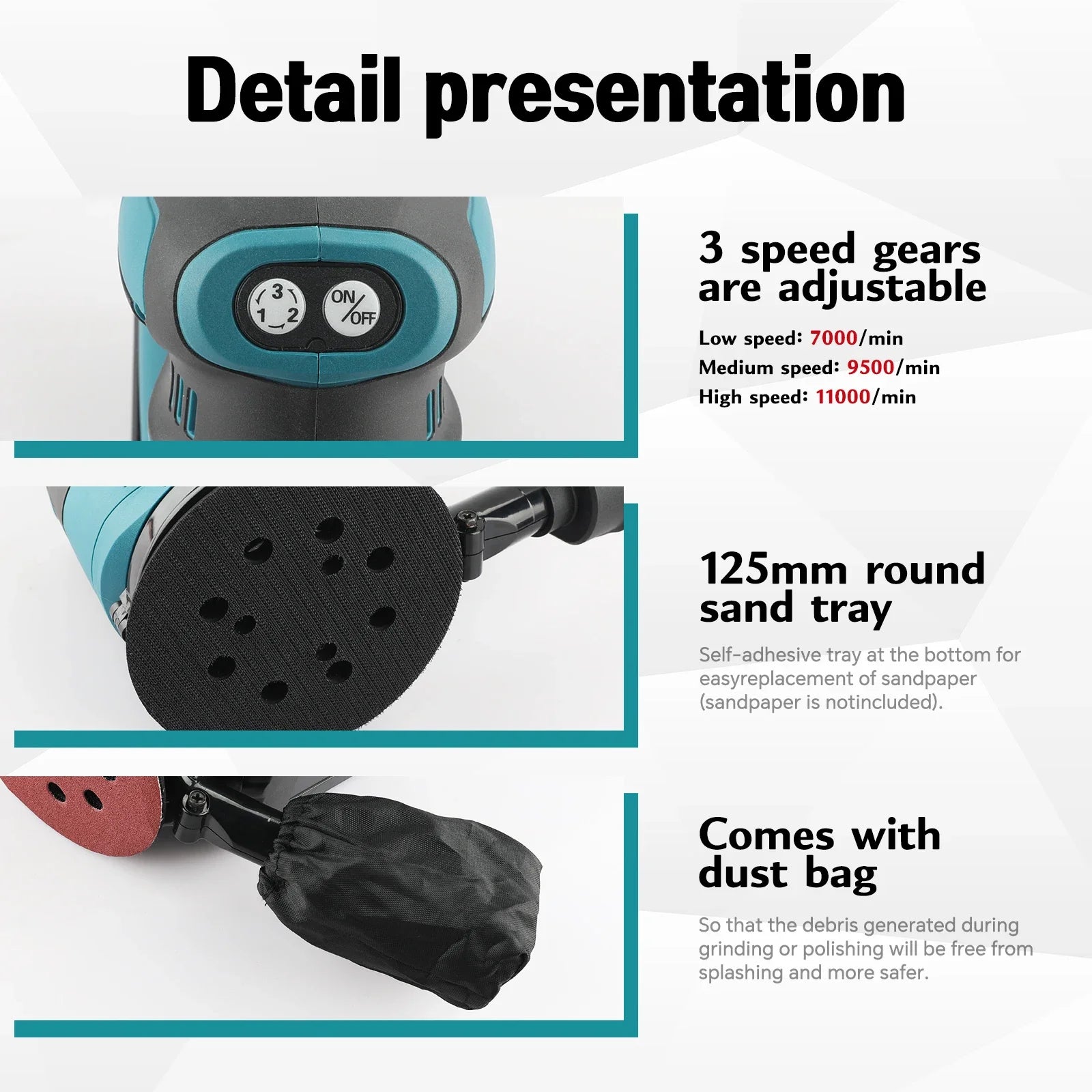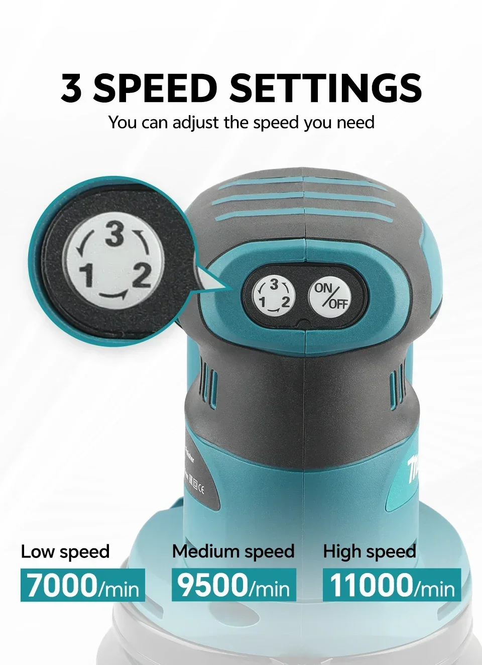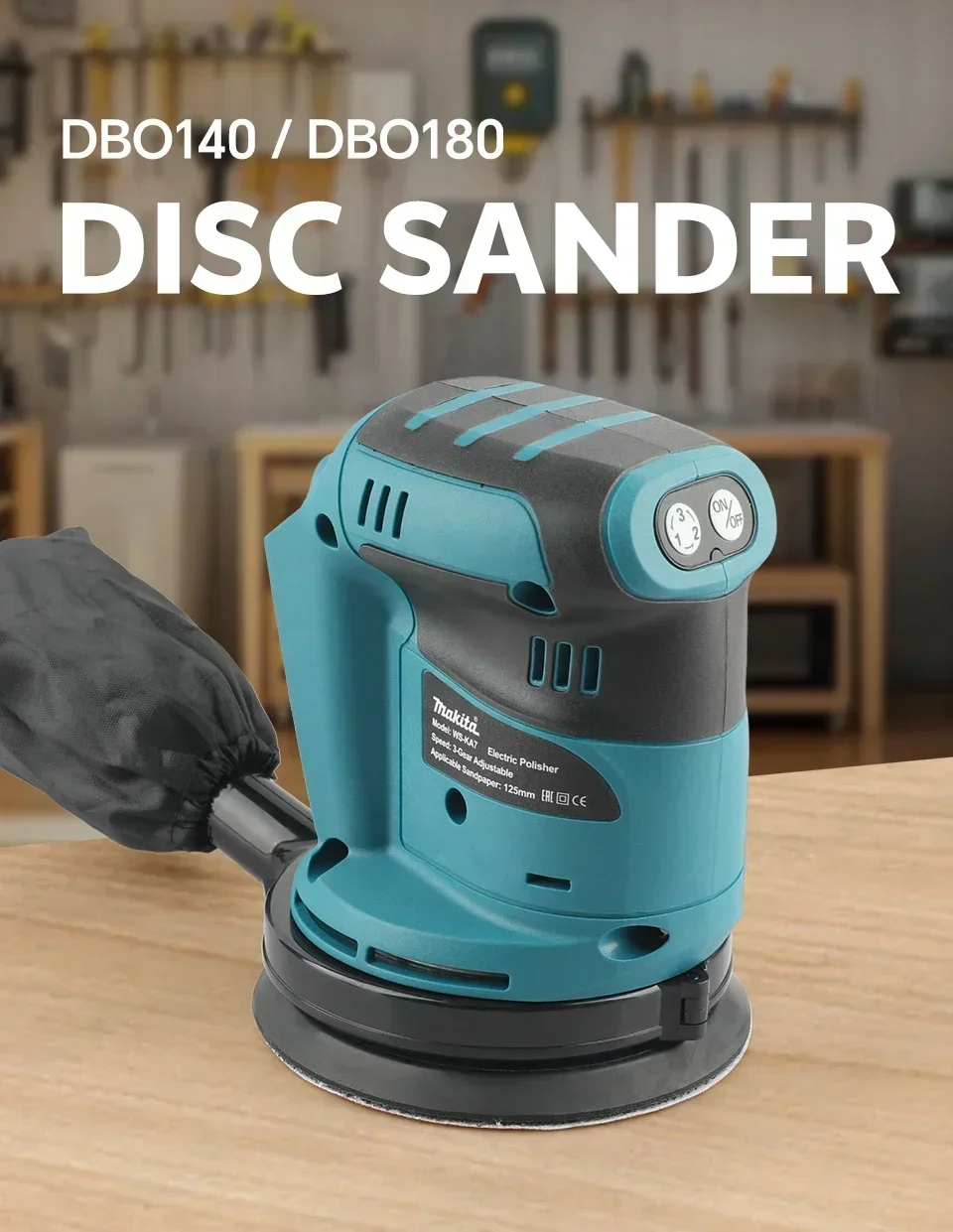 Makita Disc Sander DBO140/DBO180: 3 Speed Options, 125mm Abrasive, 11000 Max RPM, Dust Collection for Sanding & Polishing