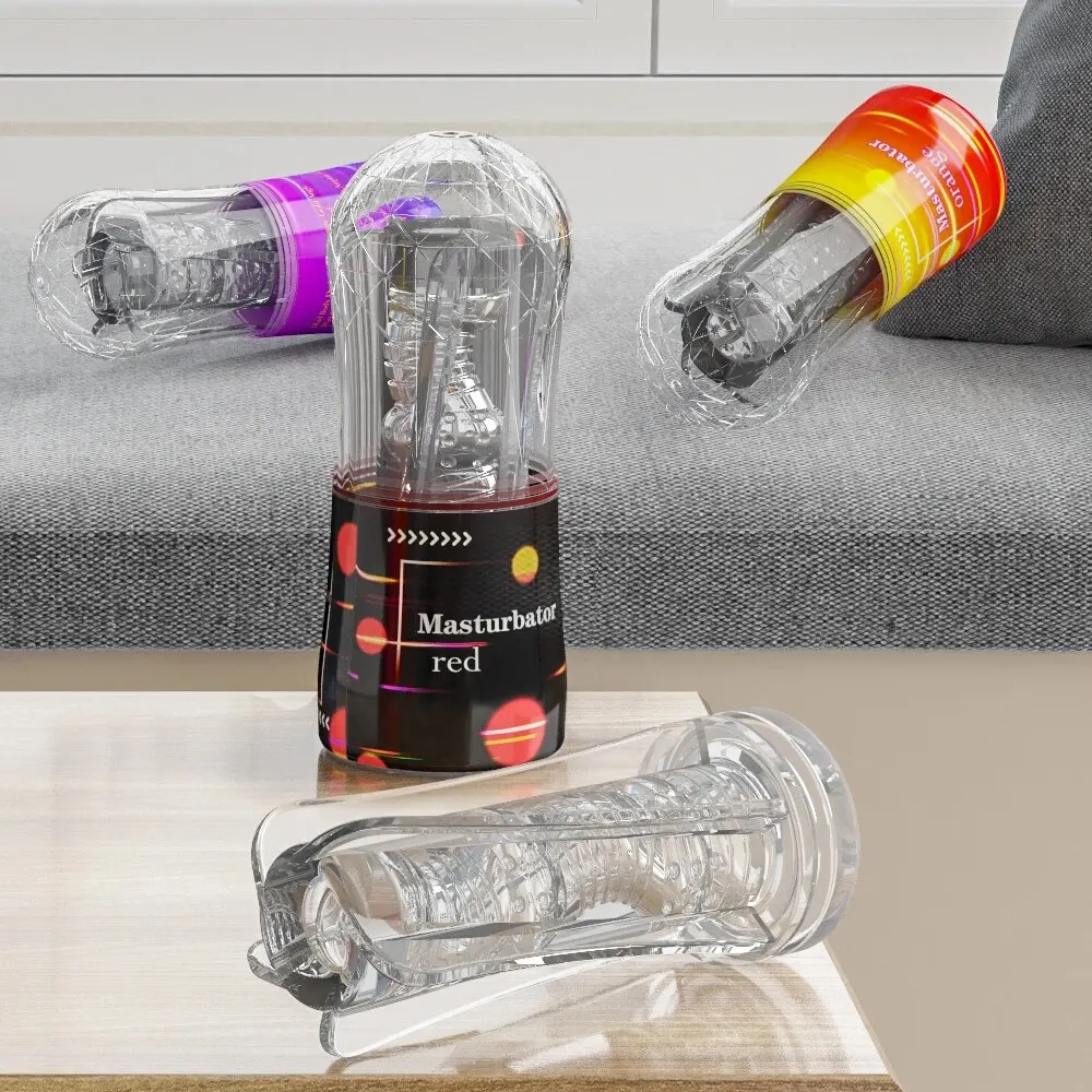 Male Masturbator Cup Soft Silicone Pussy Transparent Vagina Adult Goods Endurance Exercise Vacuum Pocket Cup for Adults Sex Toys