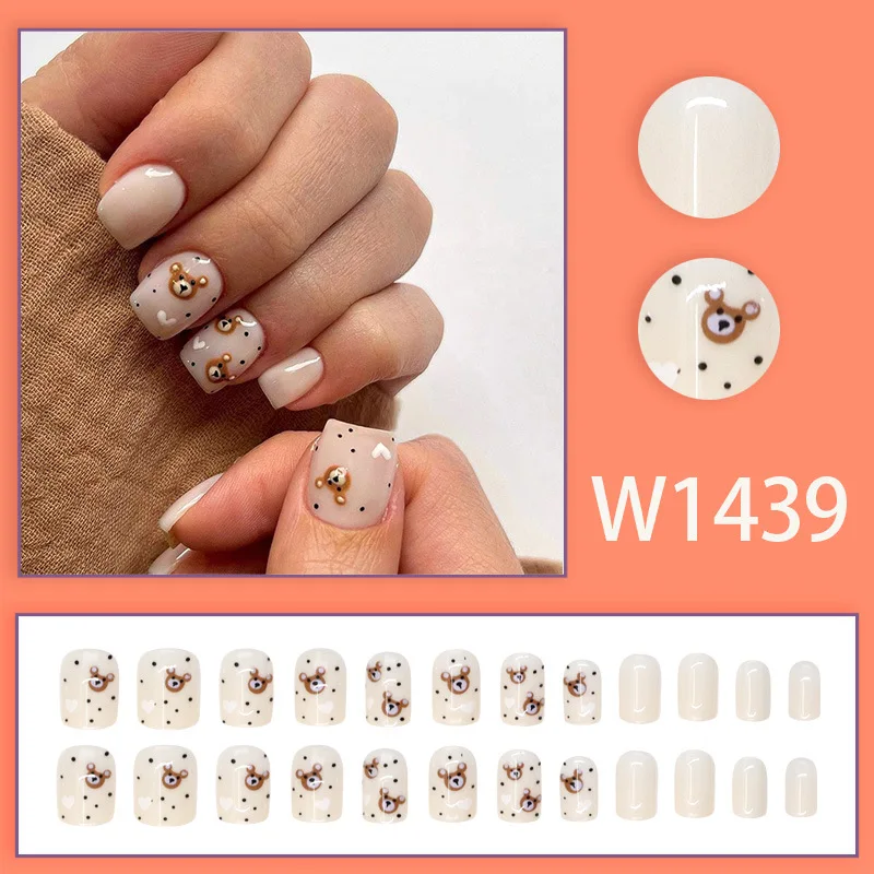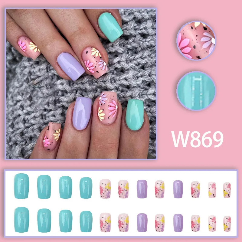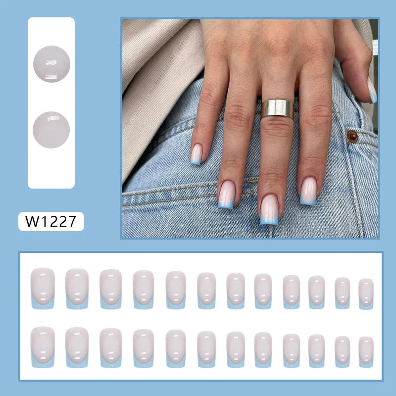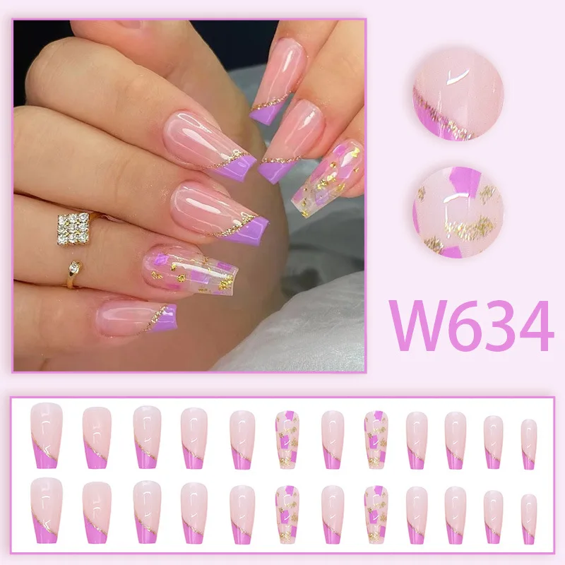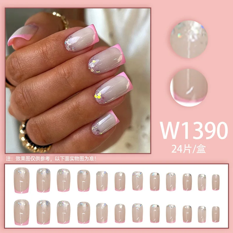 Mandarin Duck 24 Pcs Press on Nails Pink Gradient Fake Nails Glossy Artificial Finger Manicure Reusable False Nails