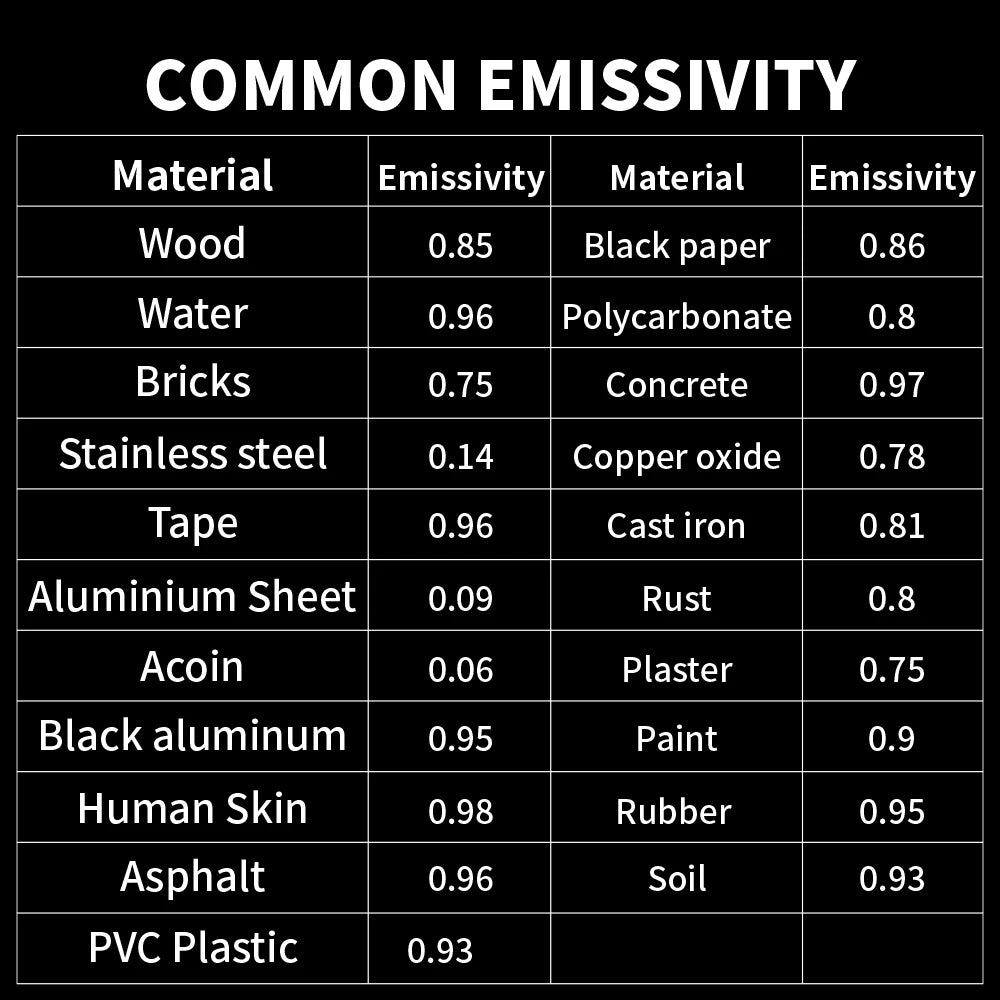 the emissivity can be adjusted according to different measurement needs on objects (ranging from 0.1 to 1)