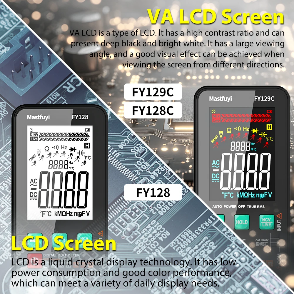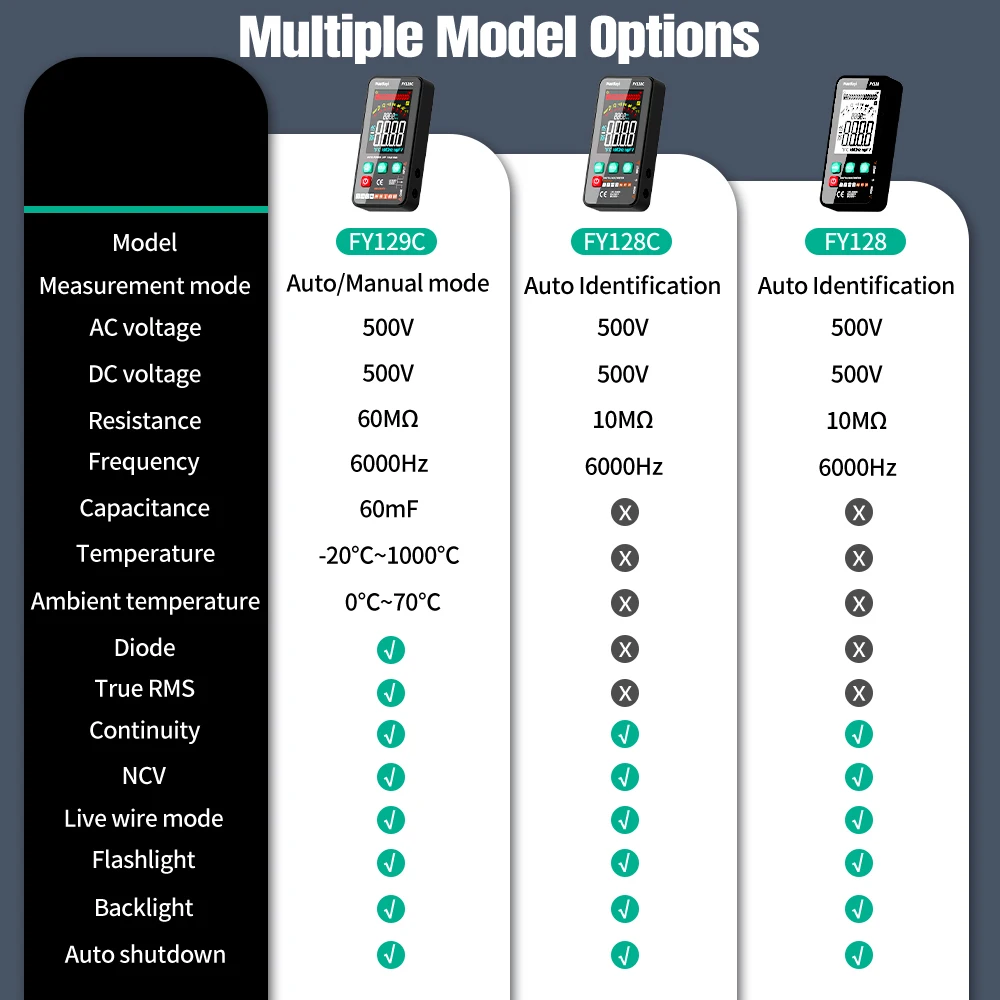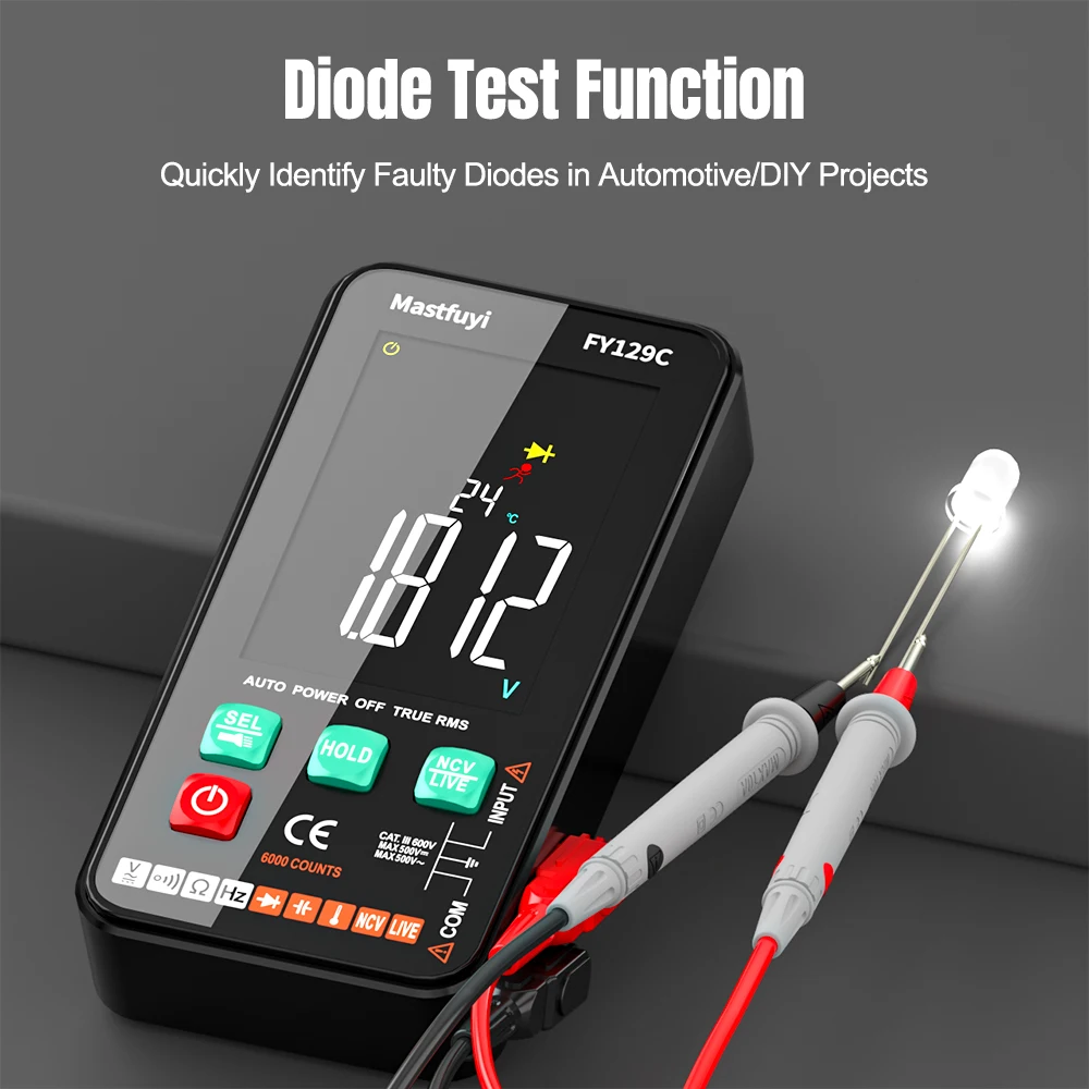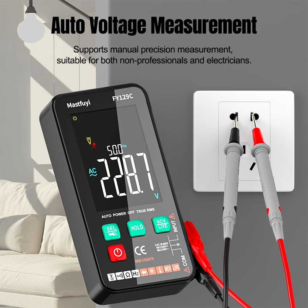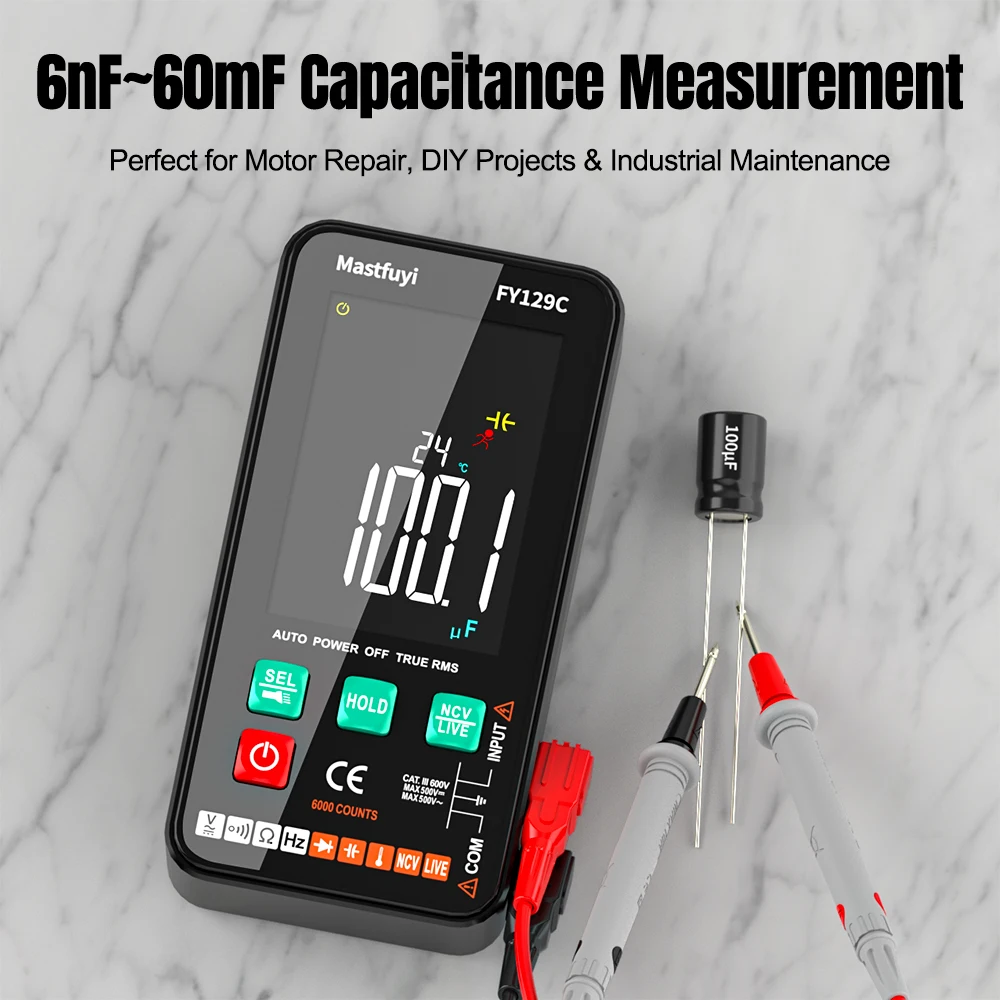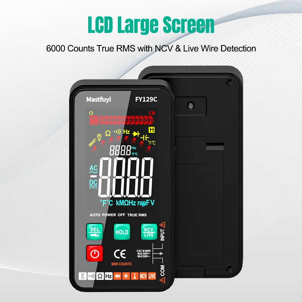 Mastfuyi FY129C Multimeter True RMS 6000 Counts NCV Temperature Capacitance Tester Auto-Ranging