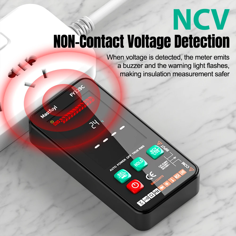 ⚡ Safety First - NCV non-contact voltage detection + live wire warning