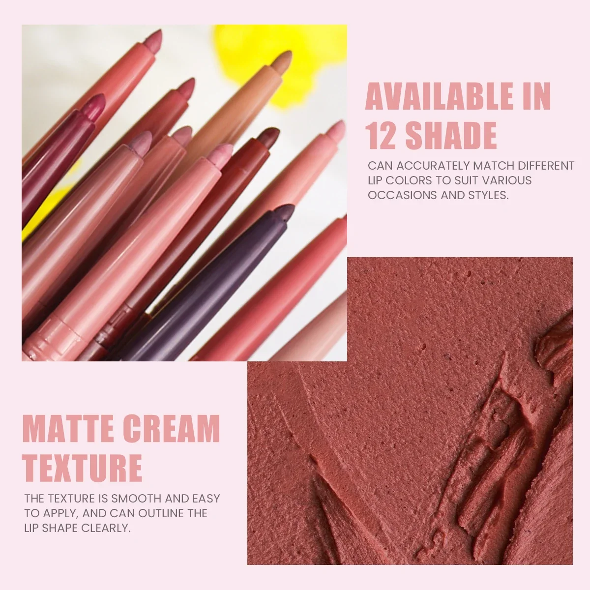 Matte Lip Liner Lipstick Pen, Waterproof Long-lasting Non-sticky, Natural Lip Makeup Look, for All Lip Types, Perfect Gifts