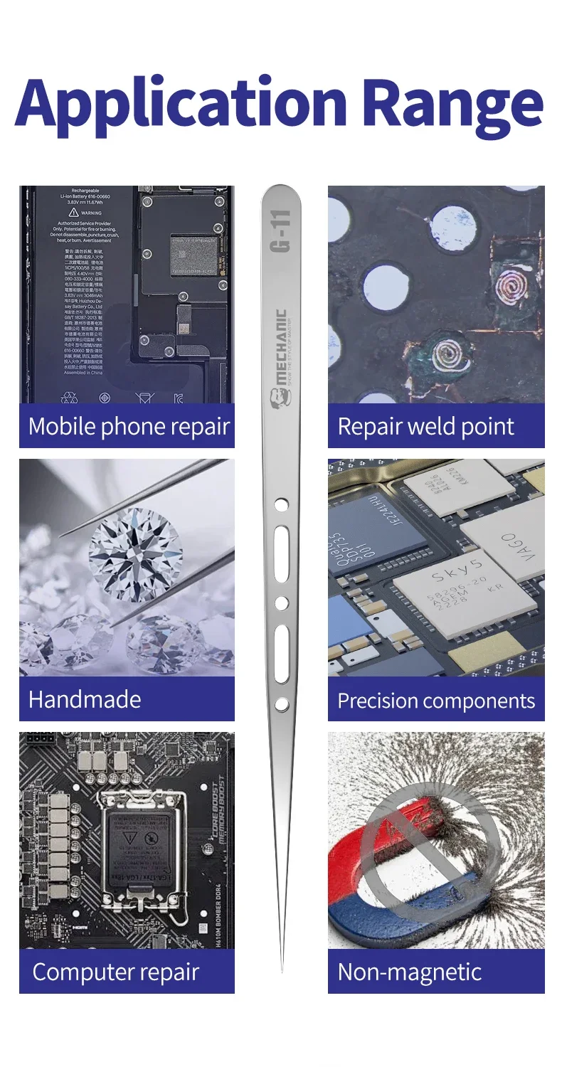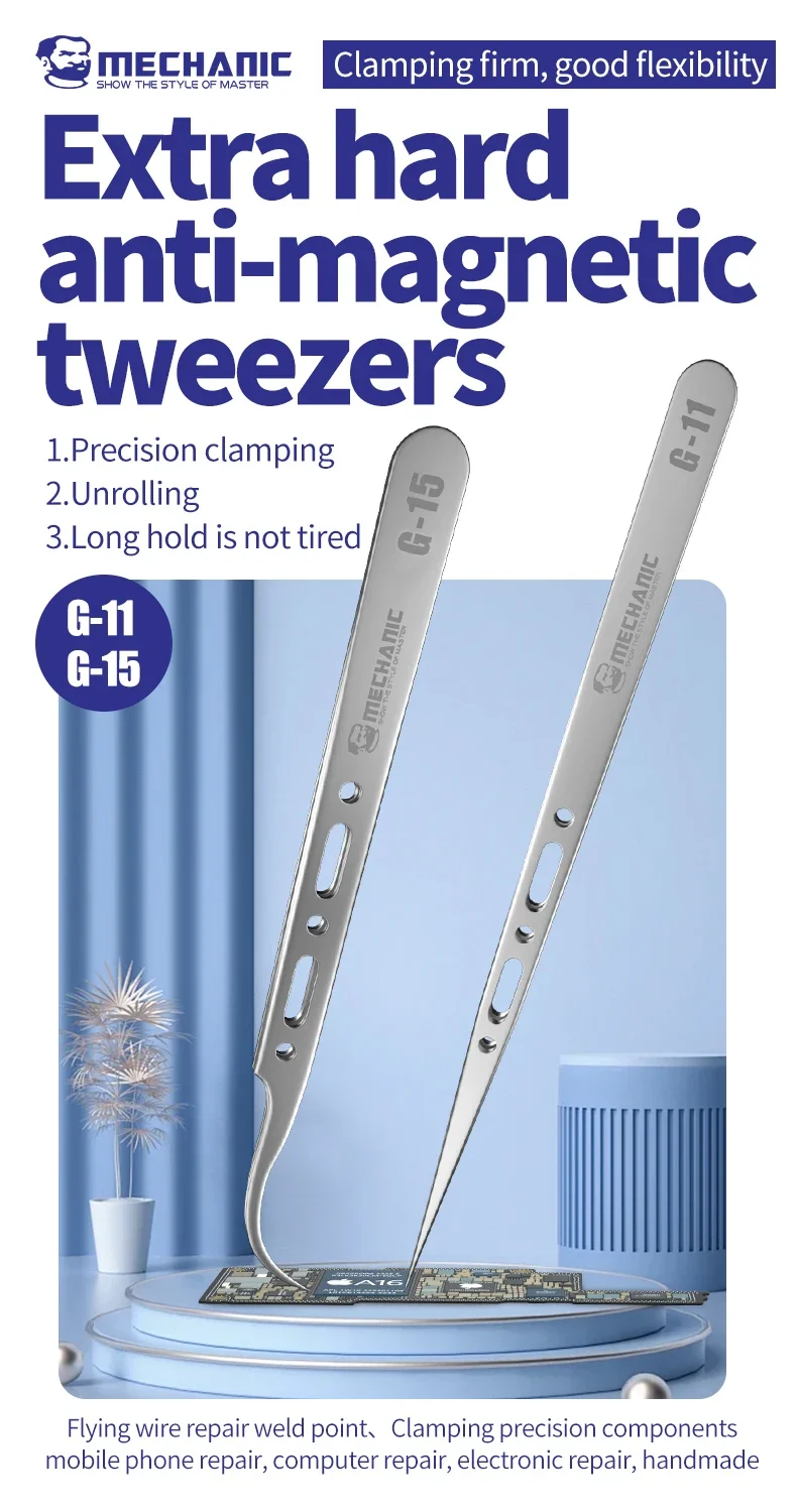 MECHANIC Professional Anti Magnetic Tweezers for Precision Electronic Components Flying Wire Repair Phone Repair Tools