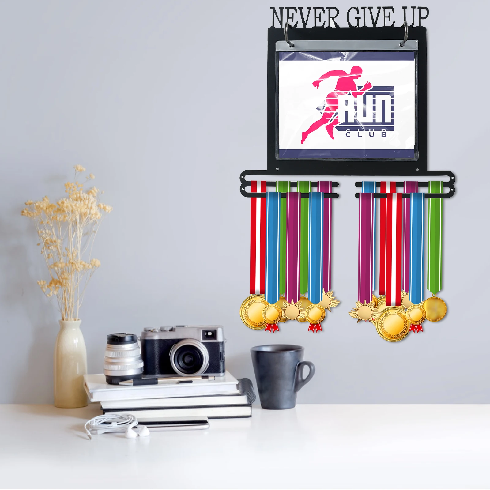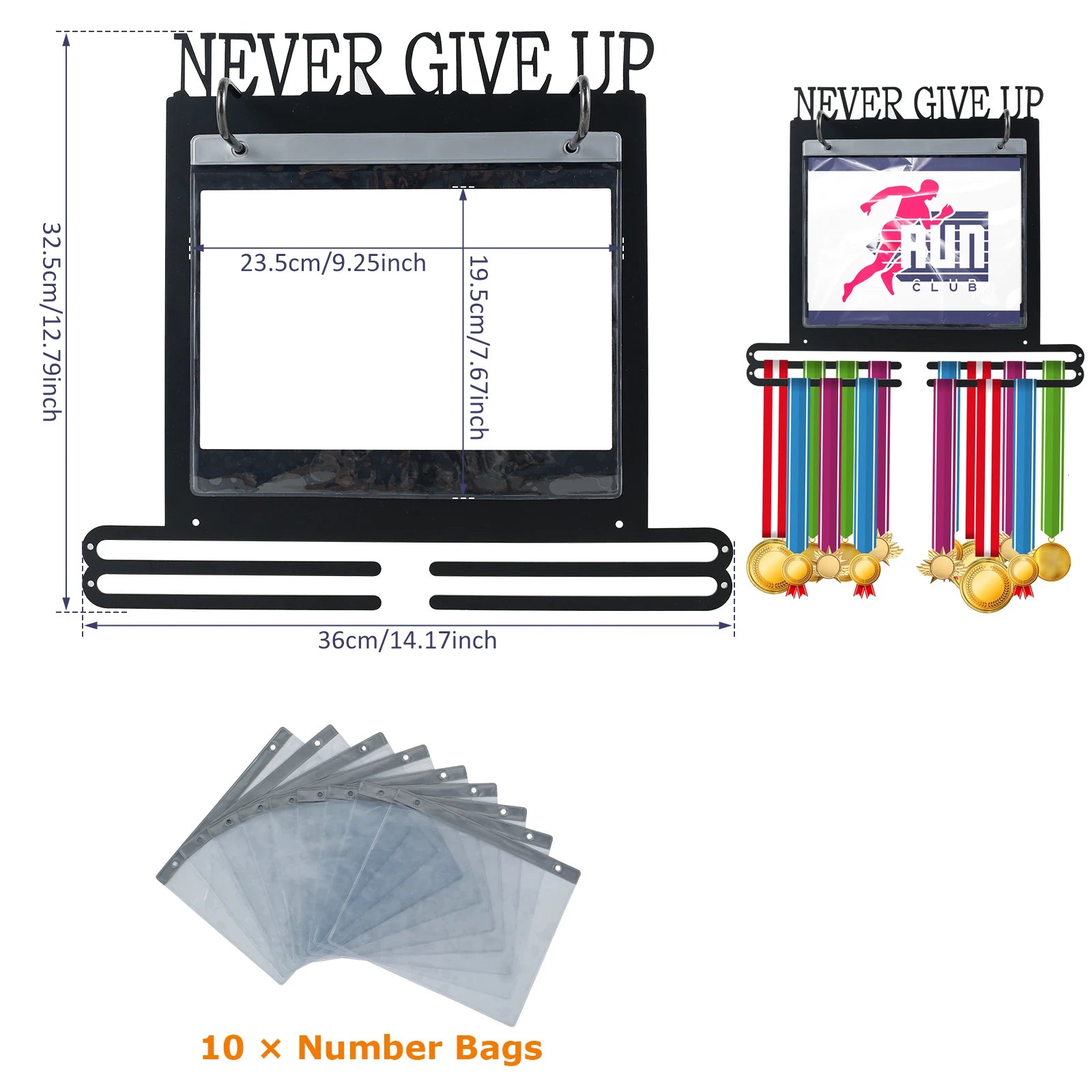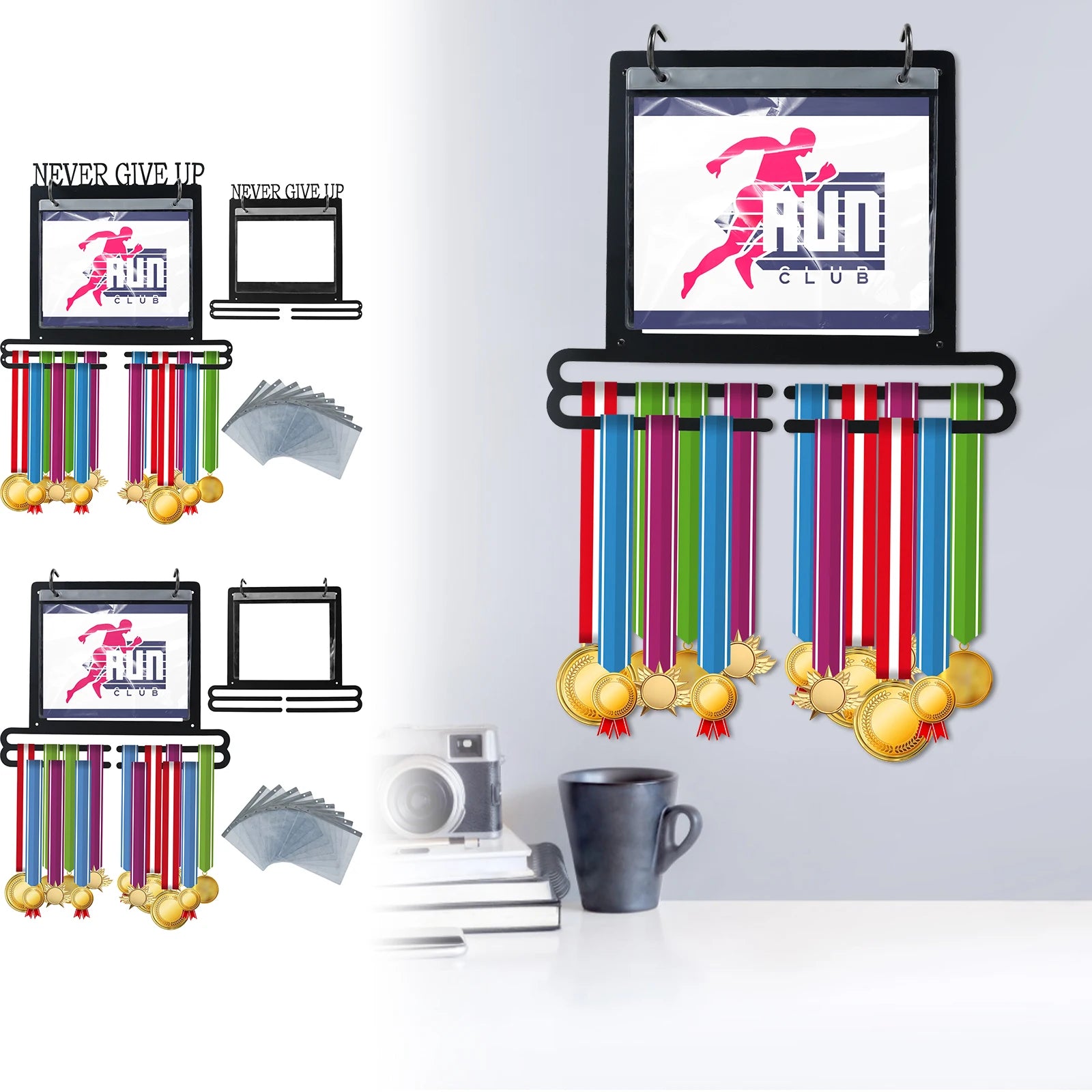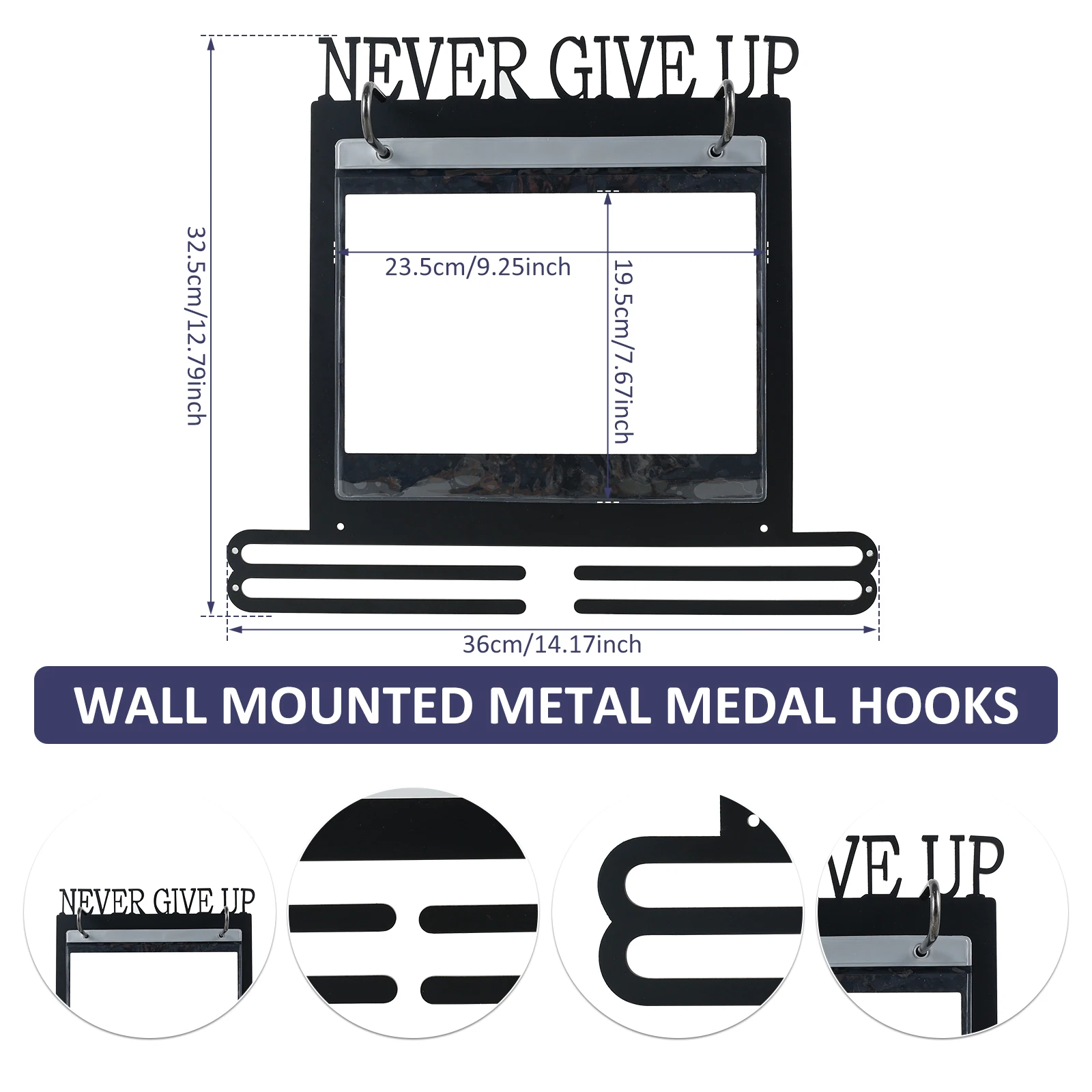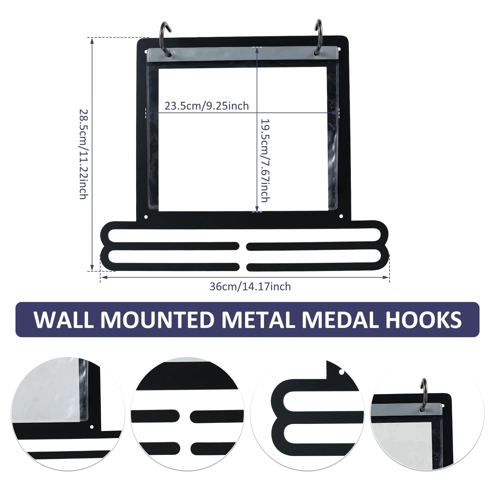Medal Hanger Display Wall Mounted Medals Display Hanger with Number Bags and Hooks for Marathon Gymnastics Swim Race Decoration