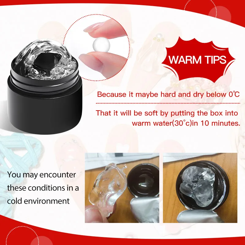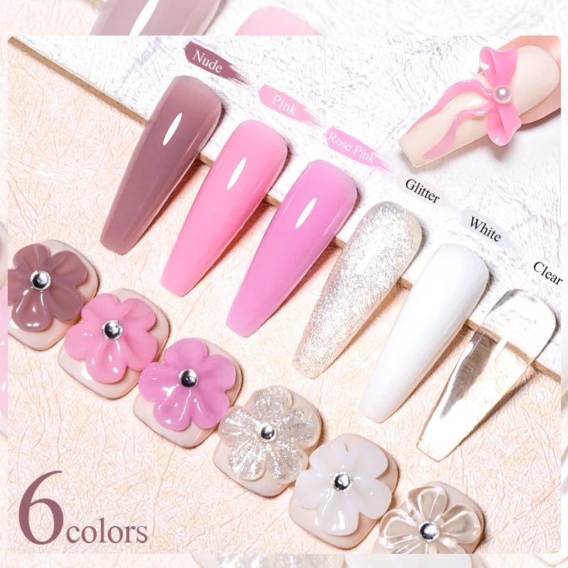 MEET ACROSS 6pcs Non Stick Hand Solid Extension Nial Gel Polish Clear Nude Pink Glitter Carving Flower Building UV Gel Nail Art