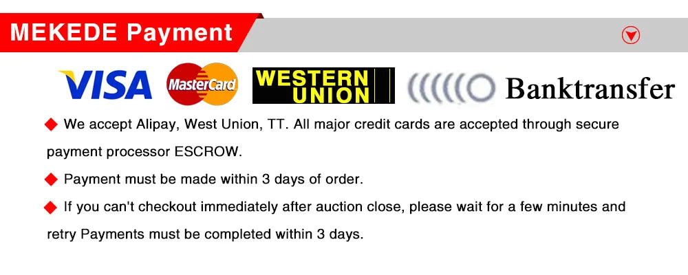 * 1.TAX:Onze de prijs is niet inclusief de belasting. Douanekosten en belastingen zijn de verantwoordelijkheid van de koper, wij verkoper kan het niet controleren en zal hier niet verantwoordelijk voor zijn, neem dan alstublieft nota van het voordat u de bestelling plaatst.