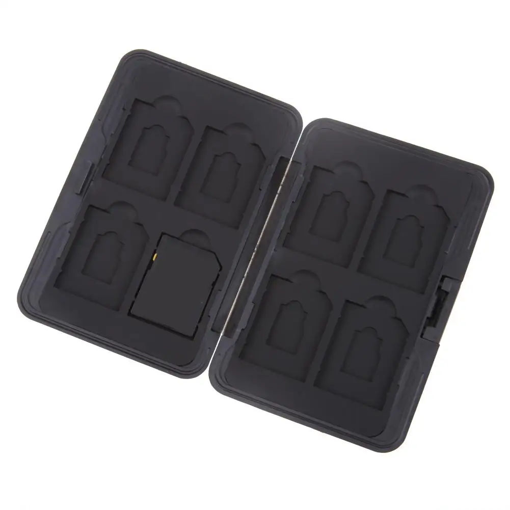 Many electronic devices, including digital cameras, laptops, tablets, MP3 players, and video game consoles have memory card slots so that consumers can increase the amount of available storage space. Because memory cards are small, easy to carry, and install and remove from a device, many consumers, especially digital photographers, carry multiple cards at one time to ensure that they never run out of storage space. Memory cards are small and quite fragile; therefore, it is a good idea to store them in a memory card case to ensure they remain in tip-top condition. Learning about the different sizes and styles of memory card cases ensures that consumers purchase the best case for their needs. Description: 1.Color: Silver 2.Size: Approx.10.3 X 7.4 X 1.7cm(L X W X H) 3.Compatible with: 8 slots for SD / SD HC/ SD XC + 8 slots for Micro SD (Aluminum Card Case Only, SD card not included) 4.Material: Plastic Features: 1.Slinger Digital Storage Aluminum Case for Eight SD /MMC Secure Digital Cards 2.Aluminum case for Secure Data cards 3.Cut-out to hold each memory card.