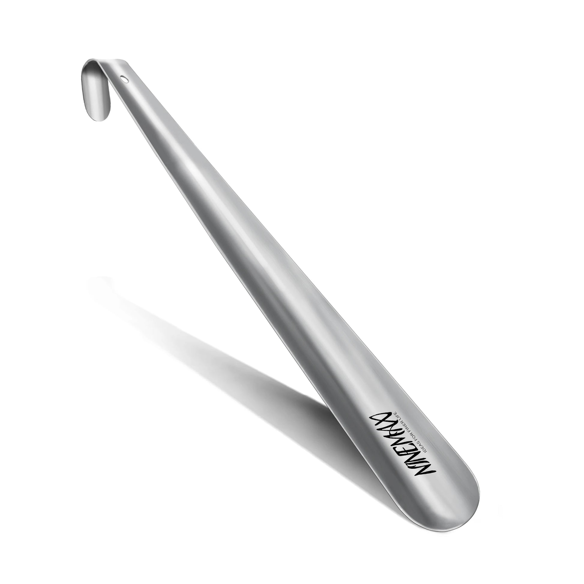 【HEAVY DUTY STEEL MADE】Complete forged steel is stamped to built this shoe horn. The NINEMAX metal shoe horn is barely bent during normal using. Heavy duty shoehorn is sturdy and unbreakable which helps to put on shoes, sneakers, boots, work boots.