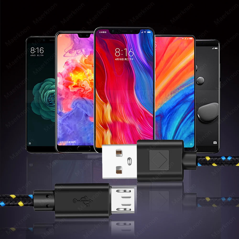 Micro USB Cable 2.4A Fast Charging Mobile Phone Charger Date Cord For Samsung Huawei Xiaomi Micro Nylon Braided Data Sync Cable