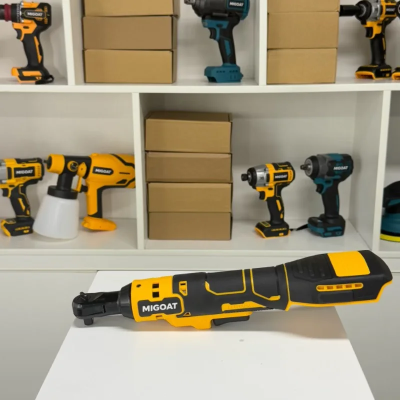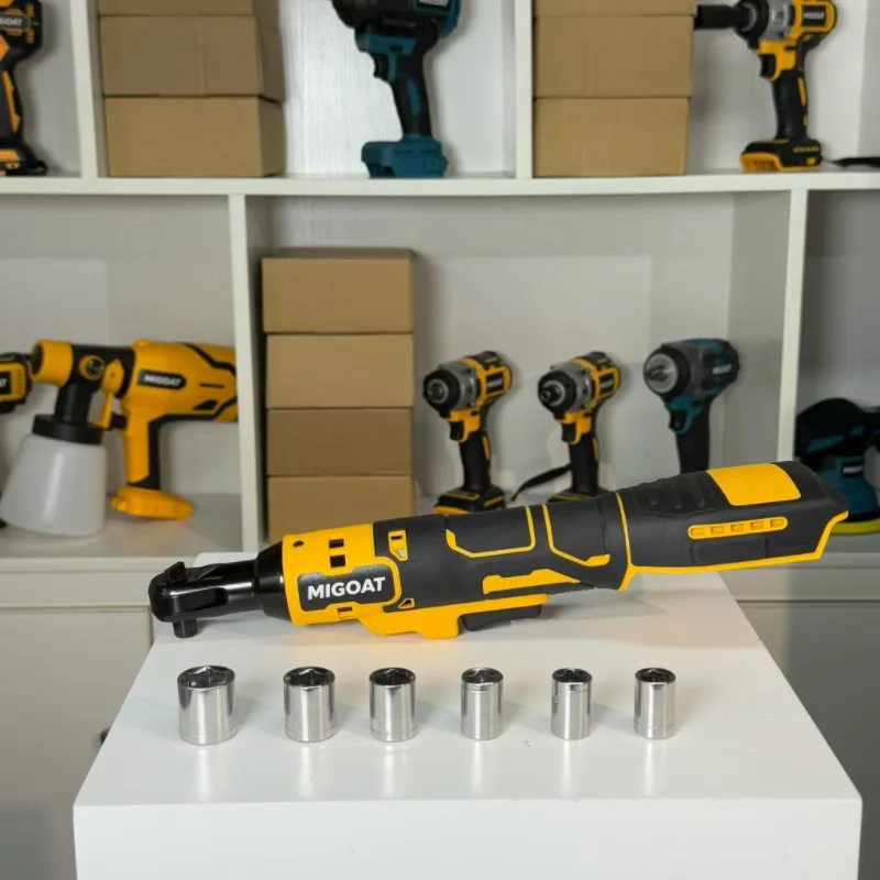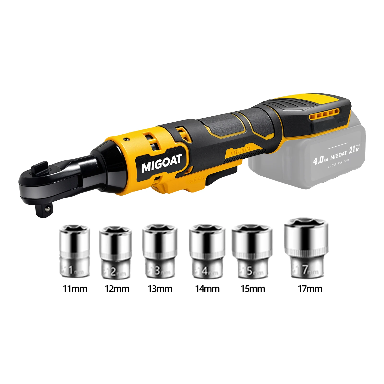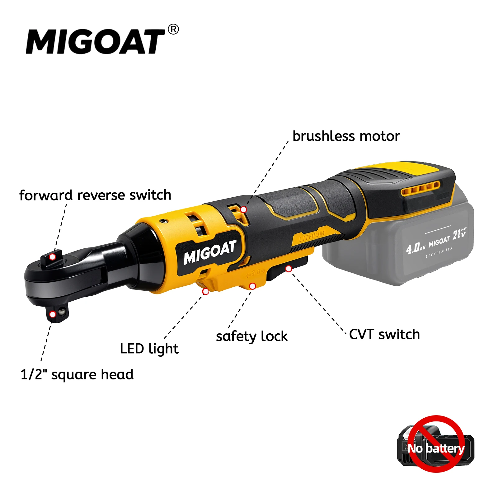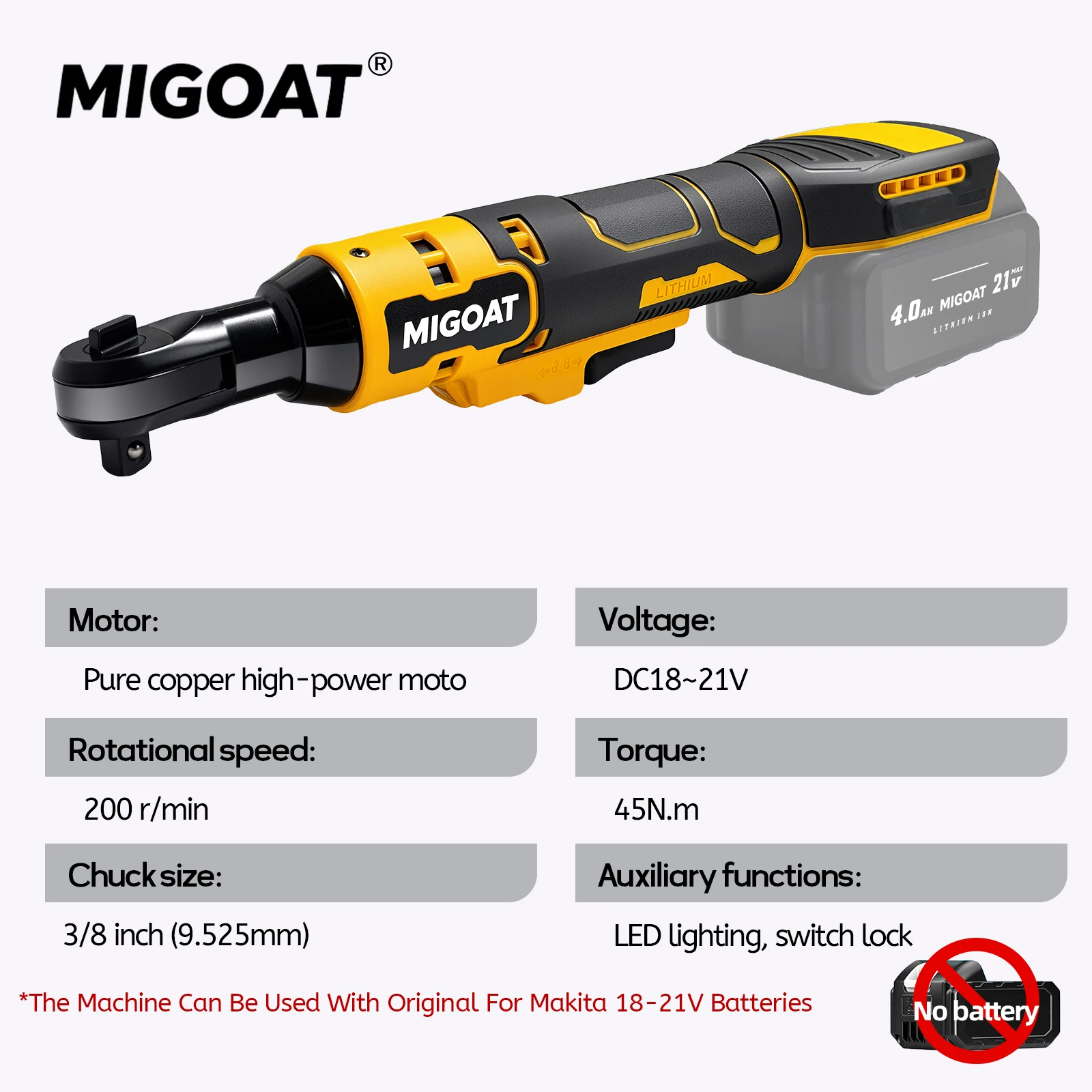 MIGOAT Cordless Electric Ratchet Wrench - 3/8 Inch Drive Brushless Motor Pump Action Design, For Makita 18V-21V Battery