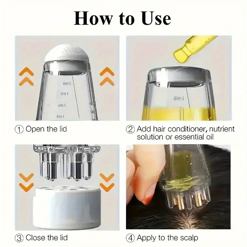Mini Portable Scalp Applicator Liquid Comb Hair Root Rolling Massage Medicated Comb Hair with Essence Oil to Nourish Scalp