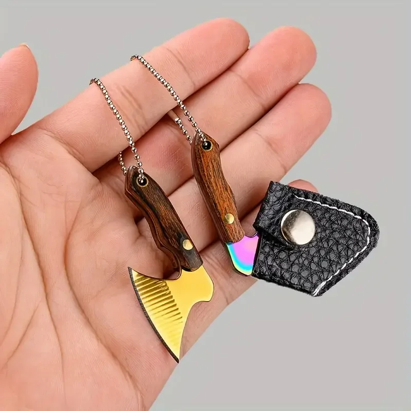Mini Stainless Steel Small Axe Portable Key Chain, Small Kitchen Knife Disassembly ECD Gift Key Pendant Decoration, Outdoor Tool