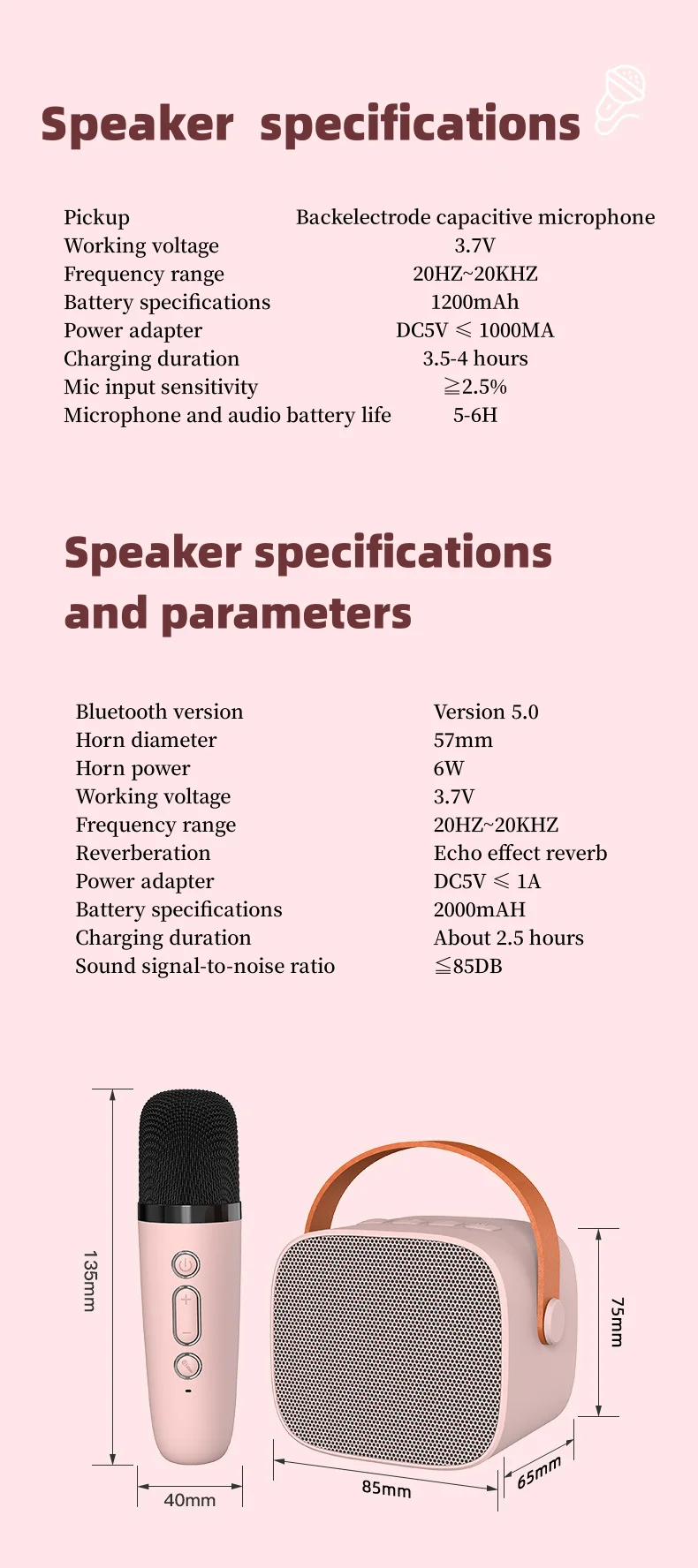 【Portable Fun, Endless Entertainment】: Indoors or outdoors, our compact mini karaoke machine is the perfect mobile party companion for kids. Whether it's a family KTV night or an outdoor gathering, it's bound to be filled with laughter and joy. Bluetooth speakers and microphones are equipped with rechargeable batteries, supporting 8 hours of delightful use.