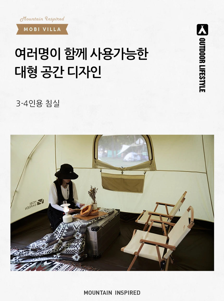 Mobi Garden Camping Era205 Cotton Tent Glamping Wide Space Double Cloth Membrane Waterproof Car Sunscreen Three-seater