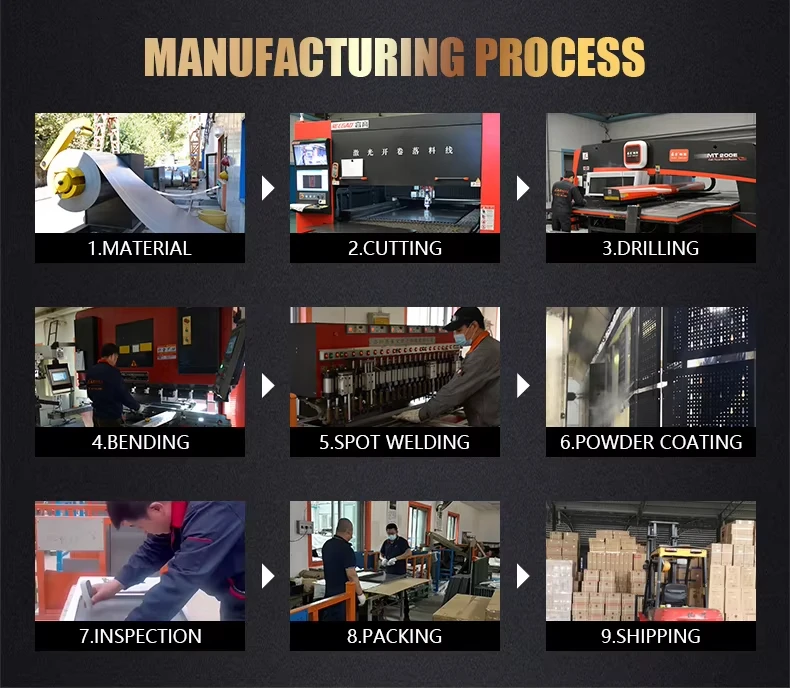 * We will take photos in each section: cutting plate, bending, welding, painting, assembling, packing,