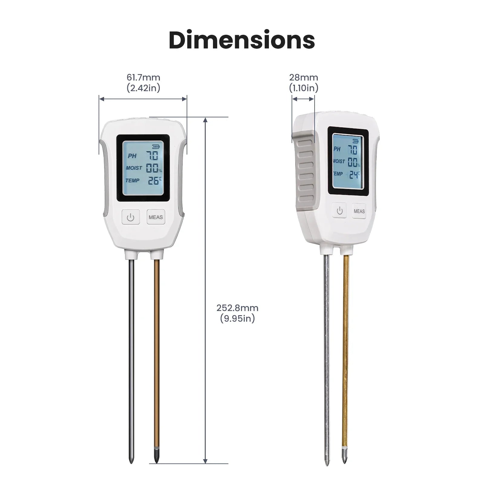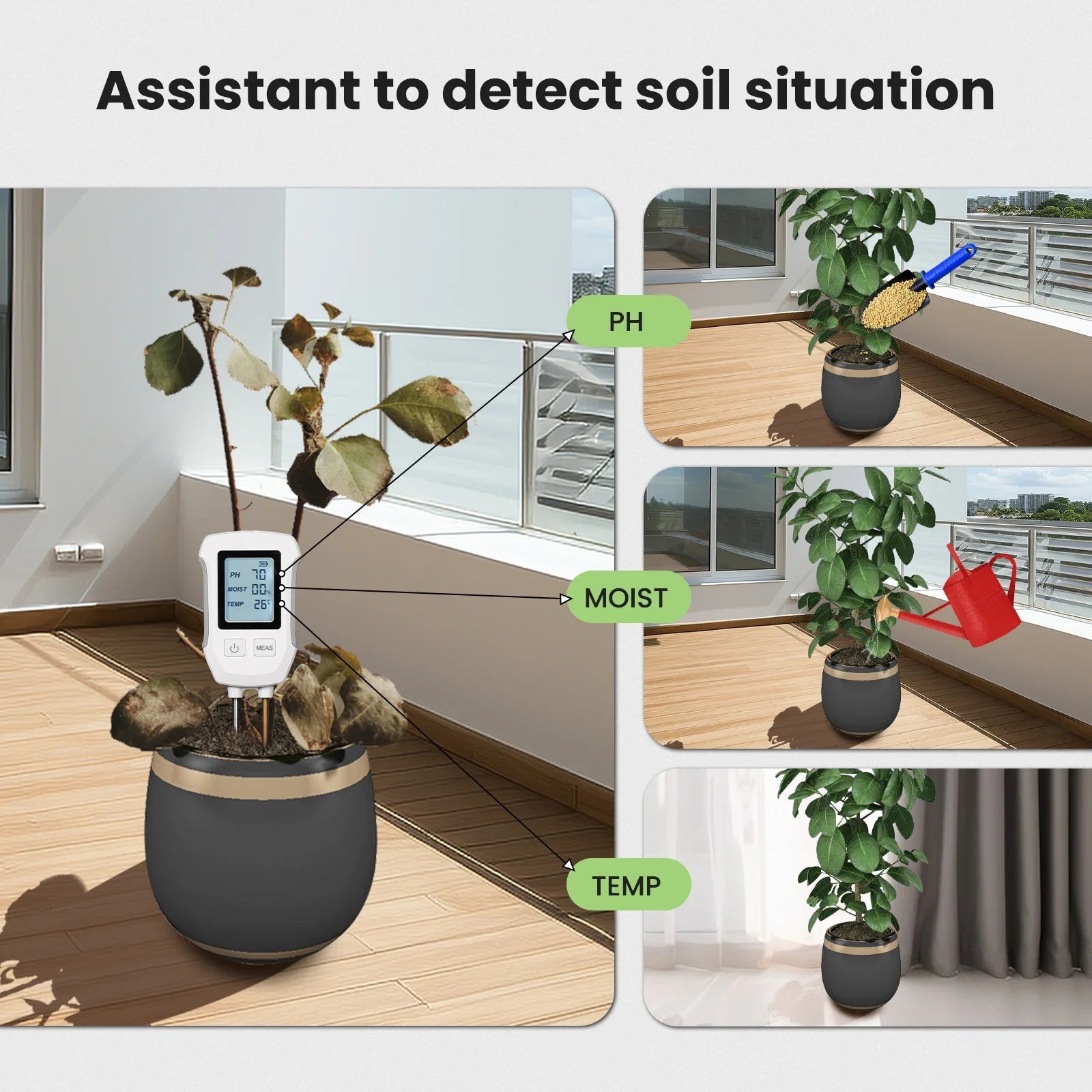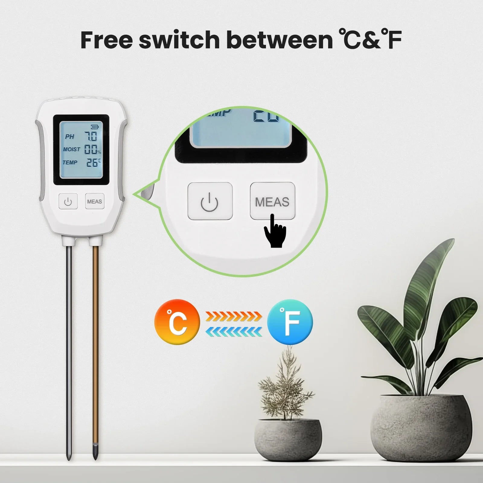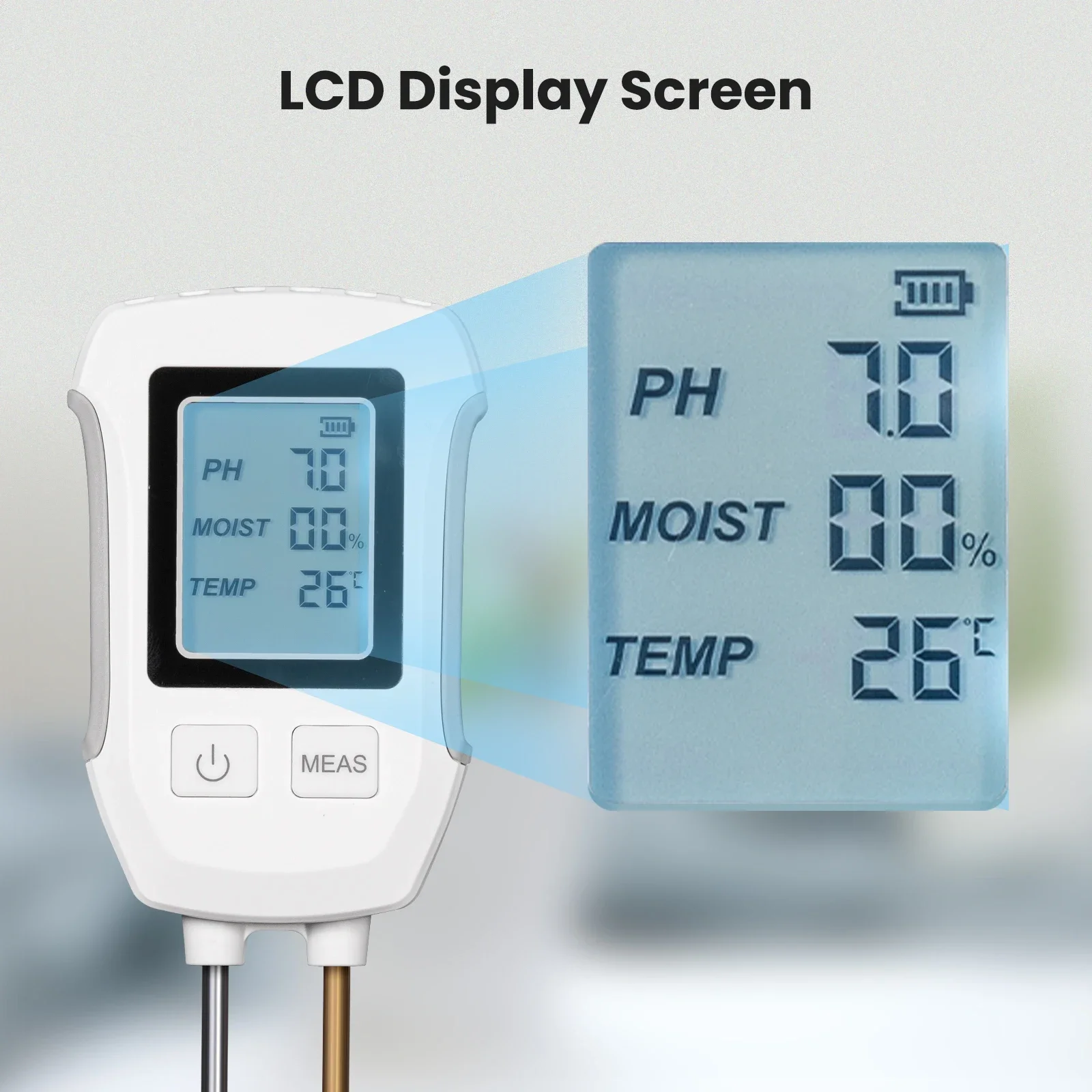 MOES 3 in 1 Soil PH Detector Tester LCD Screen Thermometer Temperature Moisture Meter For Gardening Flower Potted Plantation