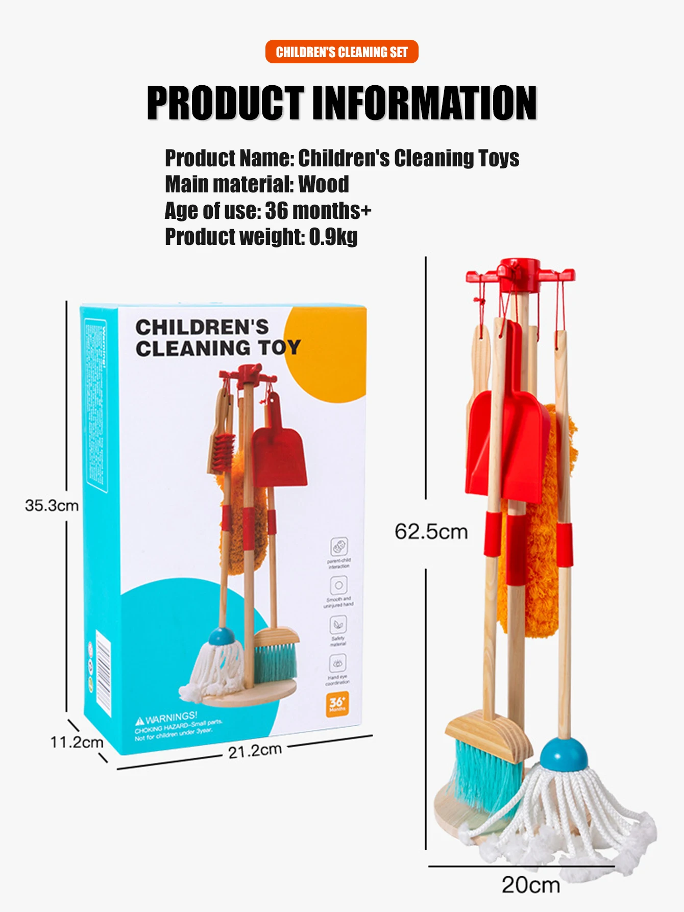 Montessori Wooden Cleaning Set Toy Little Boy Girl Simulated Children's Cleaning Tool Exercise Self-care Ability