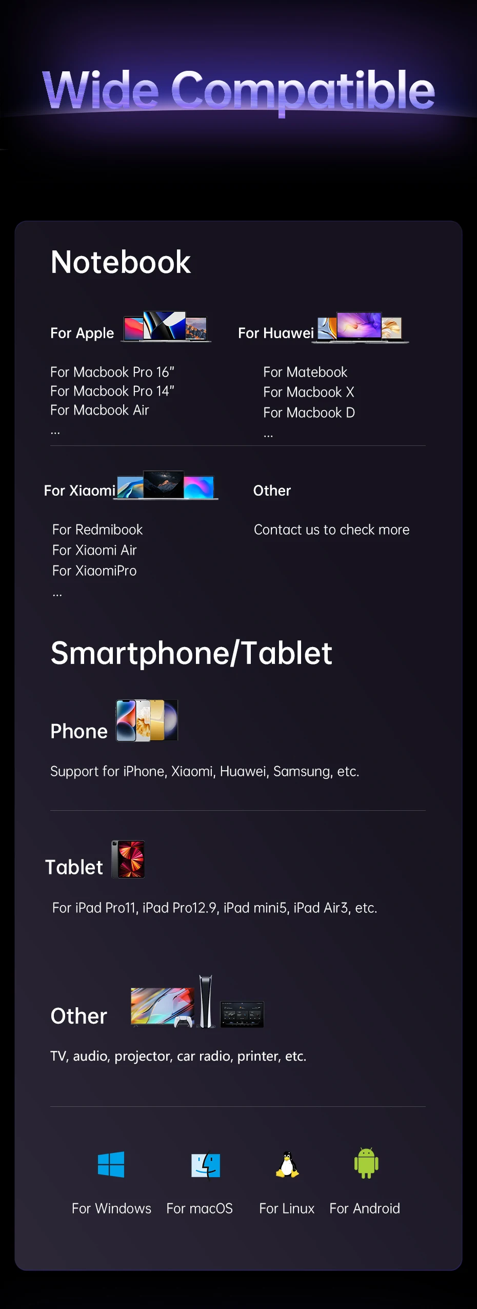 USB&Type-C dual ports, breaking the boundariesbetween different devices.