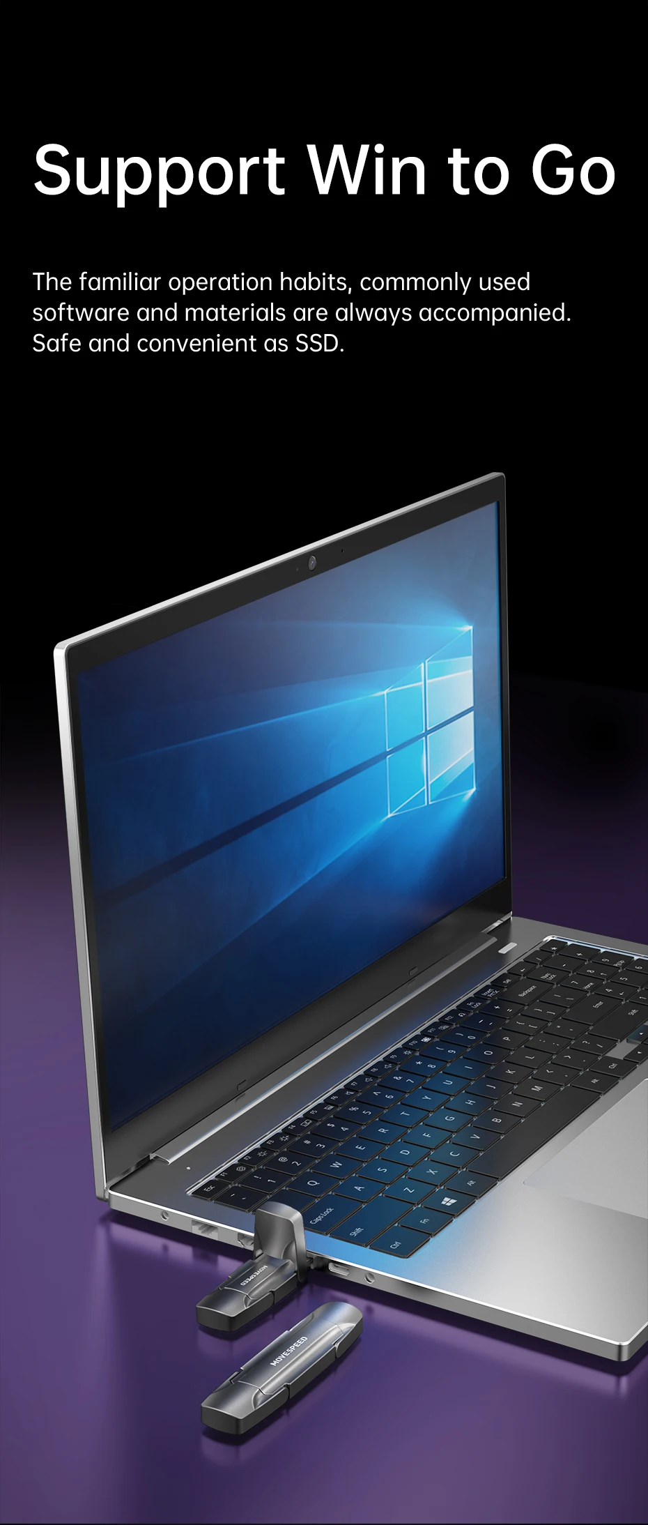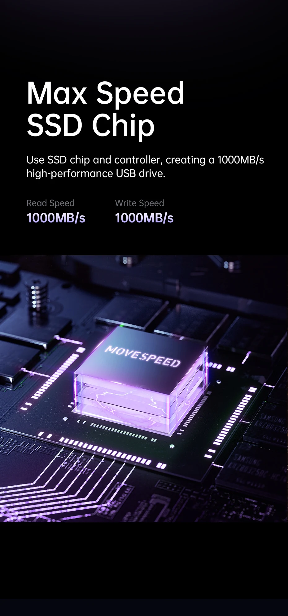 Use SSD chip and controller, creating a 1000MB/s high-performance USB drive