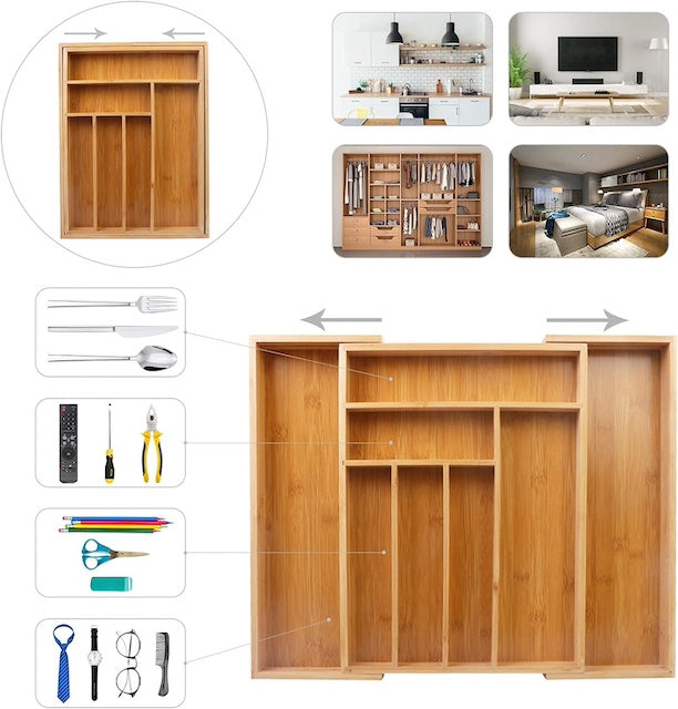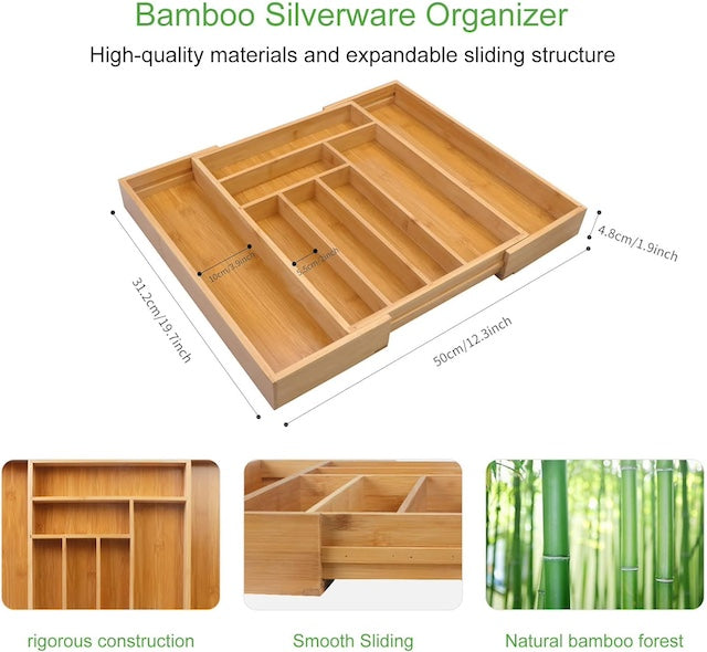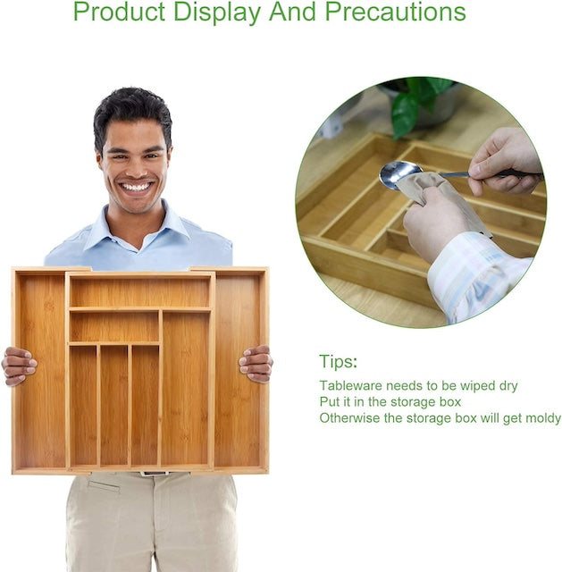 - Easy to use and clean: This expandable bamboo cutlery drawer is made of Eco-friendly bamboo. The cutlery box has a waterproof surface, so even wet cutlery can be sorted without hesitation. It is suitable for housewarming gifts and Christmas gifts for family and friends.