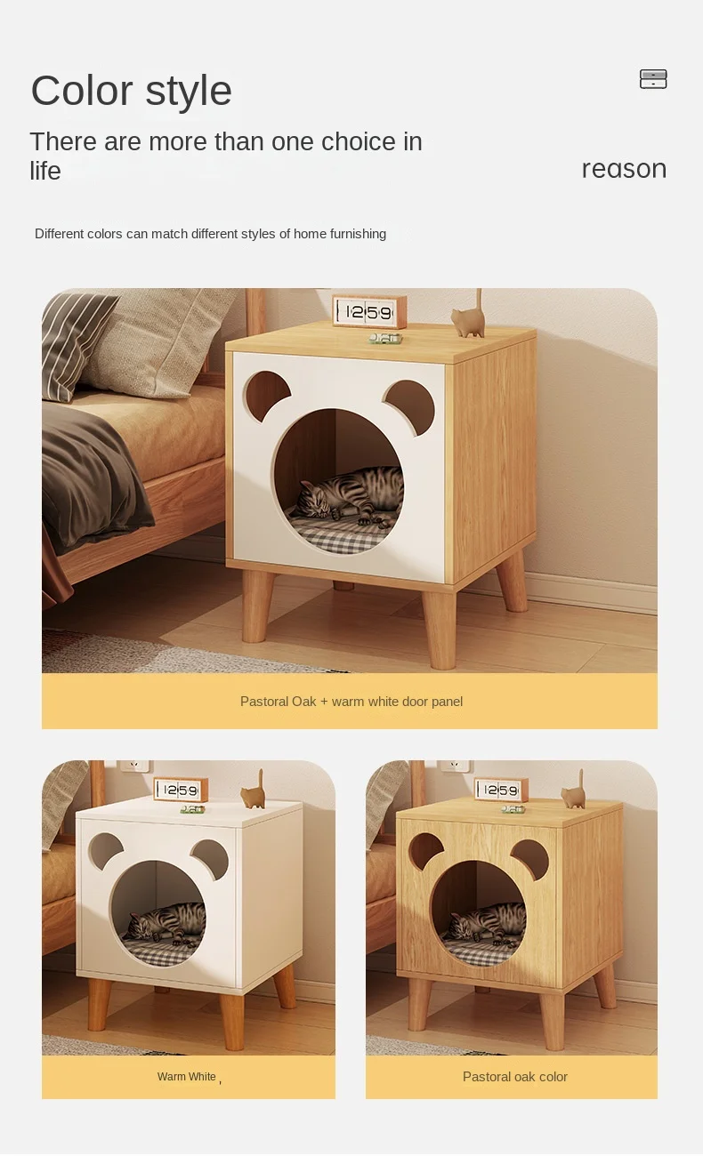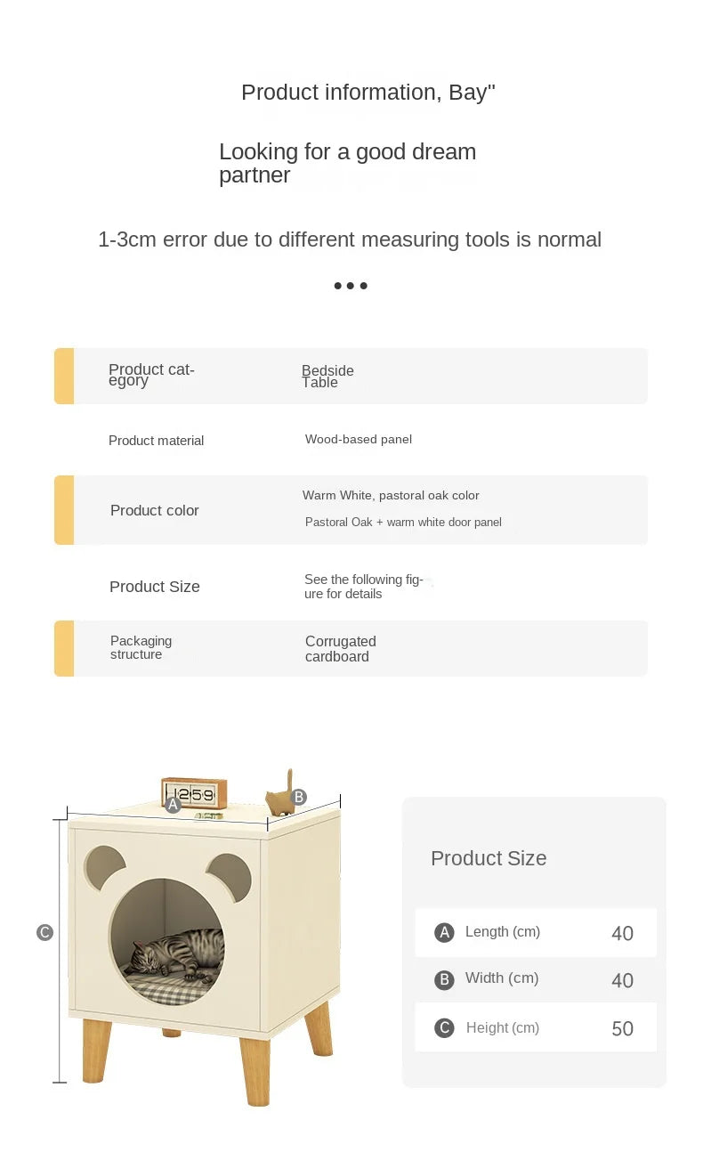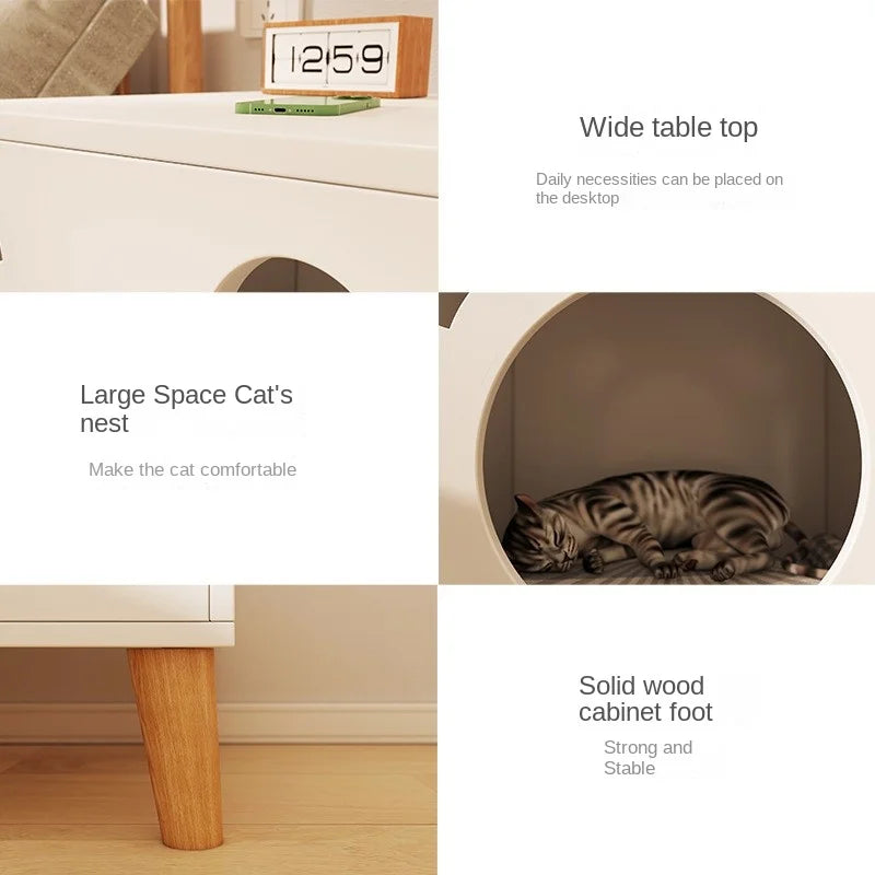Multifunctional Storage Cabinet for Cats Beds Solid Wood Cat Litter Bedside Table Simple Small Bedside Table Bed Accessories