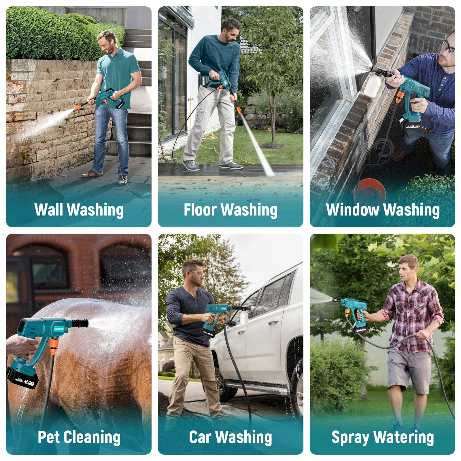 Nananuu Wireless Pressure Wash Gun Pipe Adjustable Portable Pressure Washer Lightweight Cordless Jet Wash Car Washer