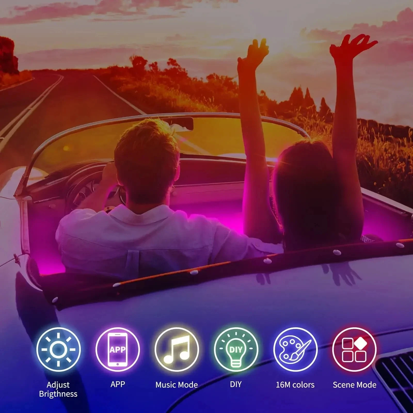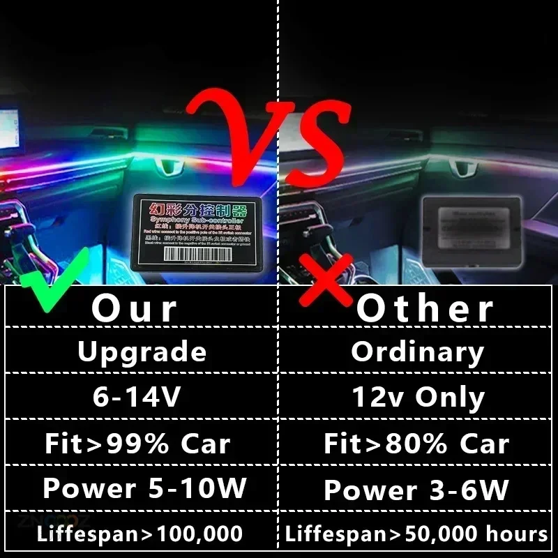 8)With your smartphone, you can easily turn the lights on and off and adjust lighting effects, colors, timing and brightness. This wireless control feature adds convenience and ensures your driving safety.